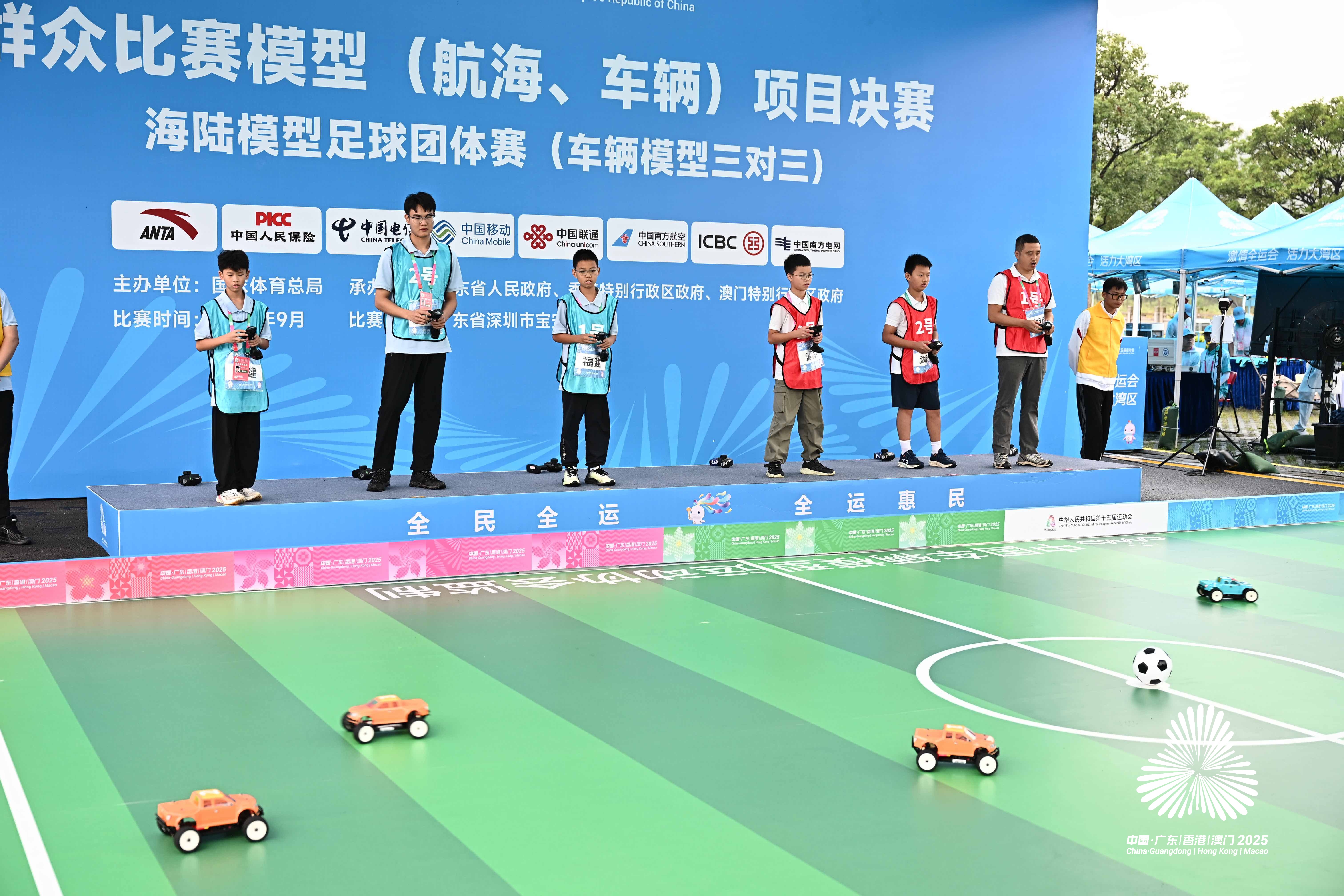 接下来举行的海陆模型足球团体赛现场同样热闹。该项目设立航海模型三对三与车辆模型三对三两个小项,同步展开角逐。选手通过遥控来操控模型进行踢球,在每场10分钟的比赛中展开激烈对抗,以胜负累计积分,最终按两项积分总和确定名次。