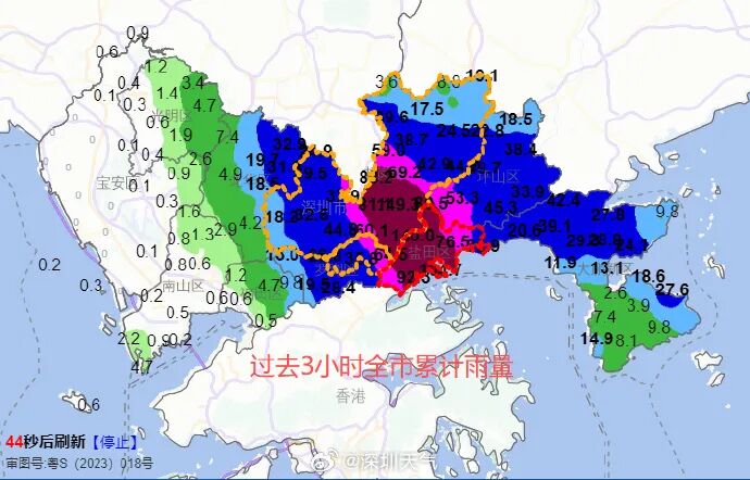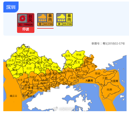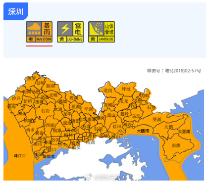 深圳市分区暴雨红色预警信号降级为橙色,并将暴雨橙色预警信号扩展至全市