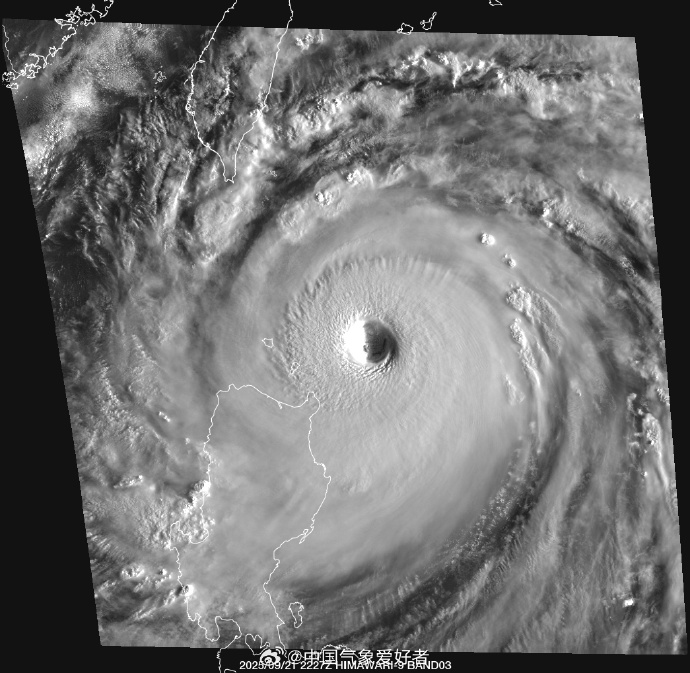 9月21日夜间到22日凌晨,桦加沙迅速完成眼壁置换,风眼扩大一倍以上,变得极其犀利深邃,22日早晨的云图可见,桦加沙的风眼像是圆规画出来的一样,它的强度可能已经超过2024年风王摩羯。