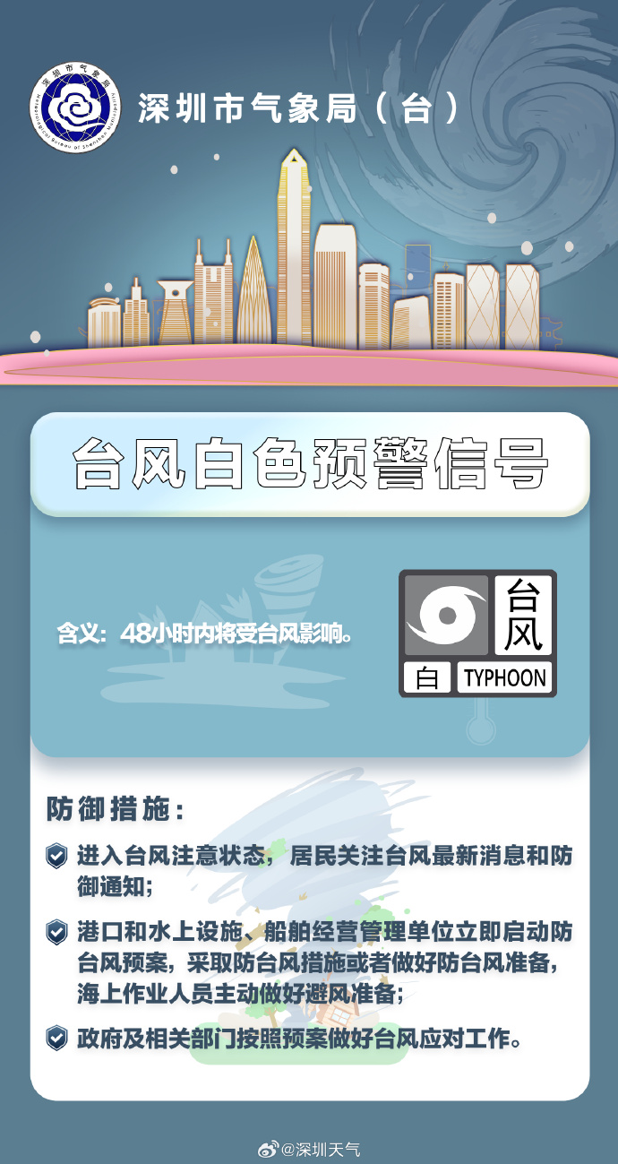 深圳市气象台2025年09月21日17时10分在深汕特别合作区、深汕海域发布台风白色预警信号,预计台风“桦加沙”将在48小时内影响我区。