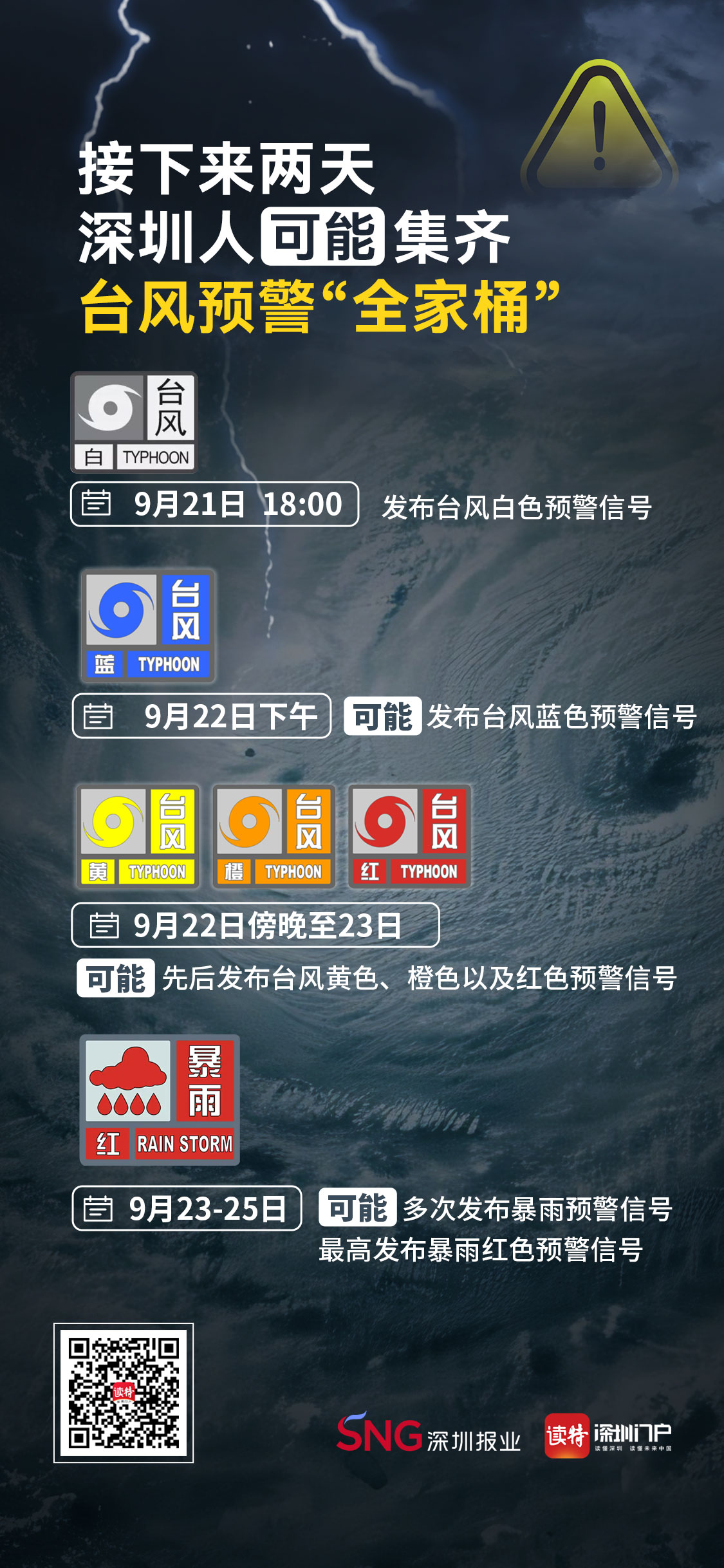 9月22日21时,深圳市气象台将全市(含深汕)台风蓝色预警信号升级为黄色。记者获悉,根据相关预案,全市在建工程已全面停工。