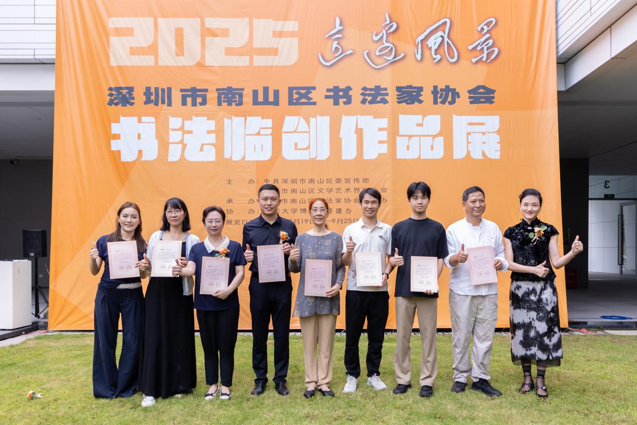 广东省书协副主席、深圳市书协主席李静,深圳市书协副主席于延丰、刘勋勇、孙宪华、万迪龙、车帝麟,河南省开封市书协副主席尚佳轩,南山区文联主席林群芳、副主席郑朝晖,南山区书协名誉主席常弘才、主席王金成等众多领导、嘉宾及文艺界朋友、媒体记者、入展作者齐聚一堂,共同见证了这一重要时刻。