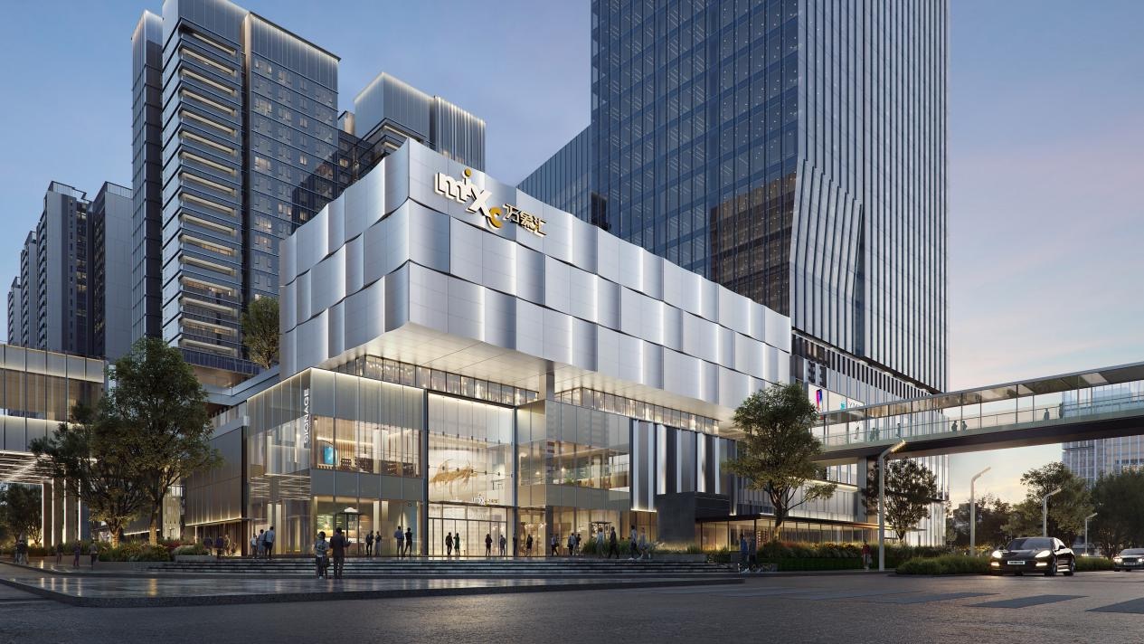 作为地铁12号线怀德站TOD上盖项目,项目实现了与地铁的“无缝衔接”,消费者出站即能到达商场;项目由两座“建筑盒子”组成,中间以双层连廊相连接,形成开放动线,项目的屋顶开放空间也被打造成为超5000㎡屋顶花园,后续将融合一系列艺术、轻运动、社交等活动及内容,为周边居民打造全新都市生活方式。