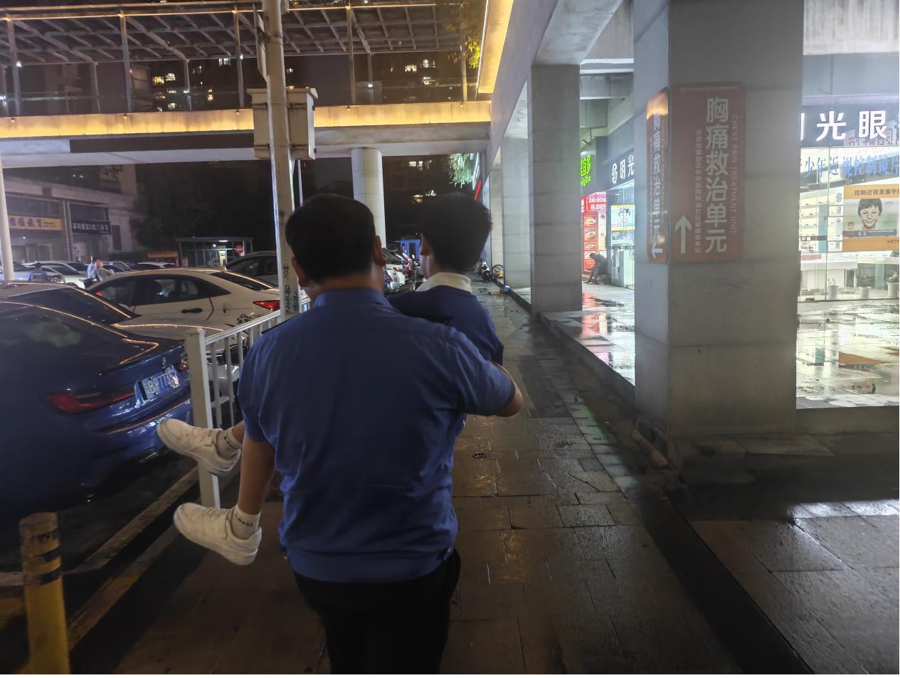 当日18时许,天色渐暗,卓宋益杰、薛嘉明按照工作计划开展晚班市容巡查工作。他们驾驶着执法车,沿着辖区路段仔细排查占道经营、共享单车违规停放等影响市容秩序的问题,全力保障夜间道路通行顺畅与城市环境整洁。就在巡查工作有序推进时,一名骑着电动车的市民突然匆匆上前,挥手拦下执法车,语气急促又带着恳求:“你好,前面有个学生骑自行车摔了,情况看着挺急的,你们能不能帮忙送一下医?”