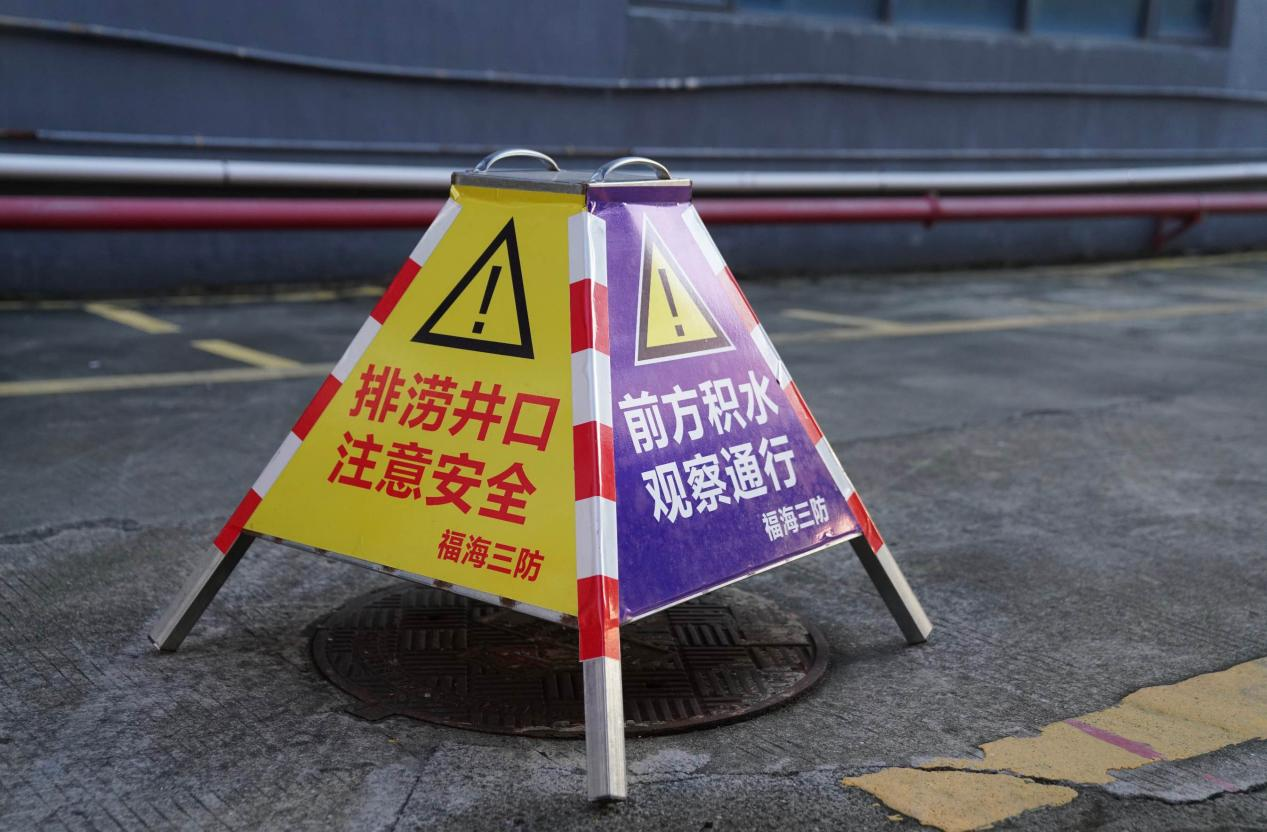 油锯、电锯、充电器,投光灯、照明灯、潜水泵……作为福海街道首个综合应急救援仓库,该仓库内不仅配备了货架、堆高车、手动拖车等设备,多种应急物资包括冲锋舟、雨衣、编织袋、沙袋等三防物资应有尽有,能够应对各种突发事件。“瞧,这个是‘警示方锥’,主要是用来盖在井盖上!”福海街道三防工作人员邓庆华指着一个方锥体应急装置告诉记者,这个警示方锥可以用来提示司机或行人:前方是“排涝井口、注意安全”“前方有积水,观察通行”,该应急装置是基层应急人员在实践中创新开发的“应急神器”,希望也能在本次台风防御中发挥大作用。