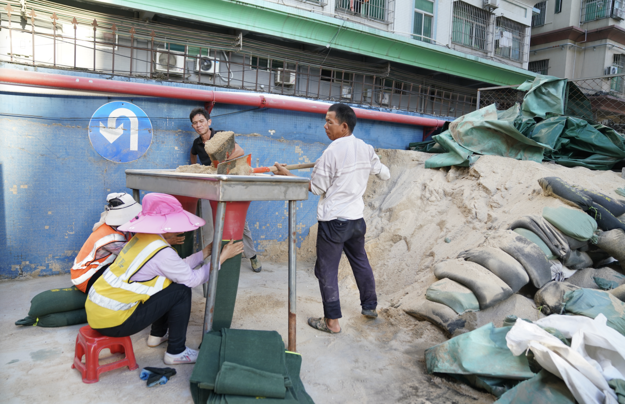 当天下午17时,本报记者来到福海街道三防应急仓库,看到数名工人正在沙池紧锣密鼓地填充沙袋。“一包沙袋差不多重25公斤,反复使用2-3年也没问题。”街道三防办工作人员介绍,为抵御此次台风,工人从早上8点就开始填充沙袋,3300个沙包可能要填充到当晚22时左右。“这些沙袋用于防御台风,我们也算是为人民服务!”只见工人们一边用沙袋接沙子,一边擦拭汗水,并将装好的沙袋整齐堆放在仓库内,不时还有社区来领取沙袋等应急物资,做到未雨绸缪。