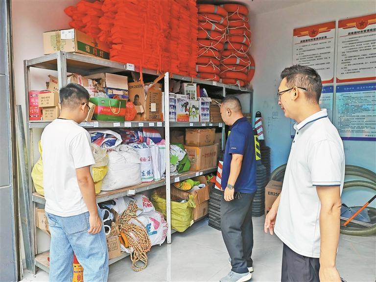 在应急物资保障方面,街道已完成挡水板、沙袋、抽水设备、发电机组、救援舟艇等关键应急物资的清点维护工作,并按预案提前部署至重点风险区域。辖区17处室内应急避难场所已全部开放。