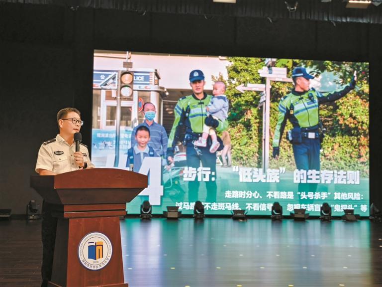 作为深圳交警队伍中的资深骨干,史钧不仅是交通法规的执行者,更以“校园安全引路人”的角色,将多年交通安全管理经验转化为生动易懂的课程,为学生安全成长筑起一道坚实防线。此次授课从学生出行安全、校园周边交通环境等实际情况出发,反复打磨教育课件,将“停车场安全、电动自行车骑乘安全、滑板车使用安全、行走安全、车辆盲区认知”五大核心板块与小学生认知规律深度结合,让课程内容精准契合学生日常出行风险点,成为打通校园交通安全“最后一公里”的关键抓手。