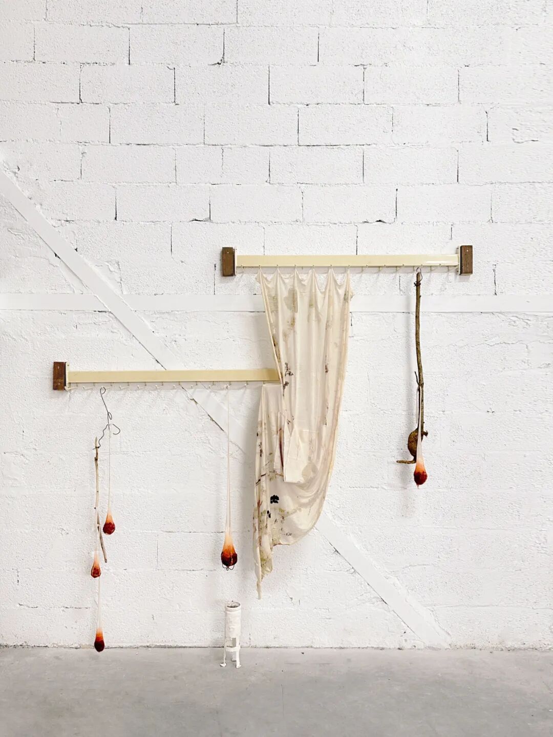 植物诗,2024,200cm × 180cm × 20cm, 装置(衣架,种子,茜草根粉末,植物染布,布)