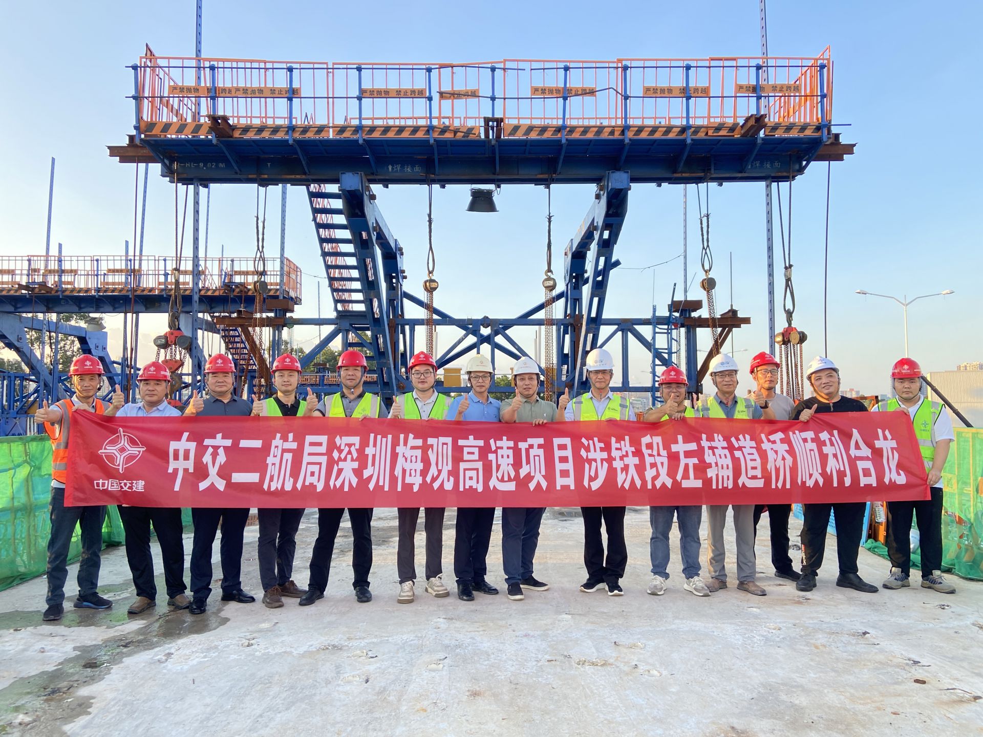 深圳梅观高速项目全长7.98公里,主要建设内容是将原梅观高速从双向6车道高速改扩建为双向14车道的市政道路,由中交二航局承建的一标项目起于乐立交北侧原梅林主线收费广场南端,止于留仙立交起点,路线全长约2.24公里,施工过程中有5座新建连续梁桥上跨既有平南铁路线,安全风险高、施工难度大。