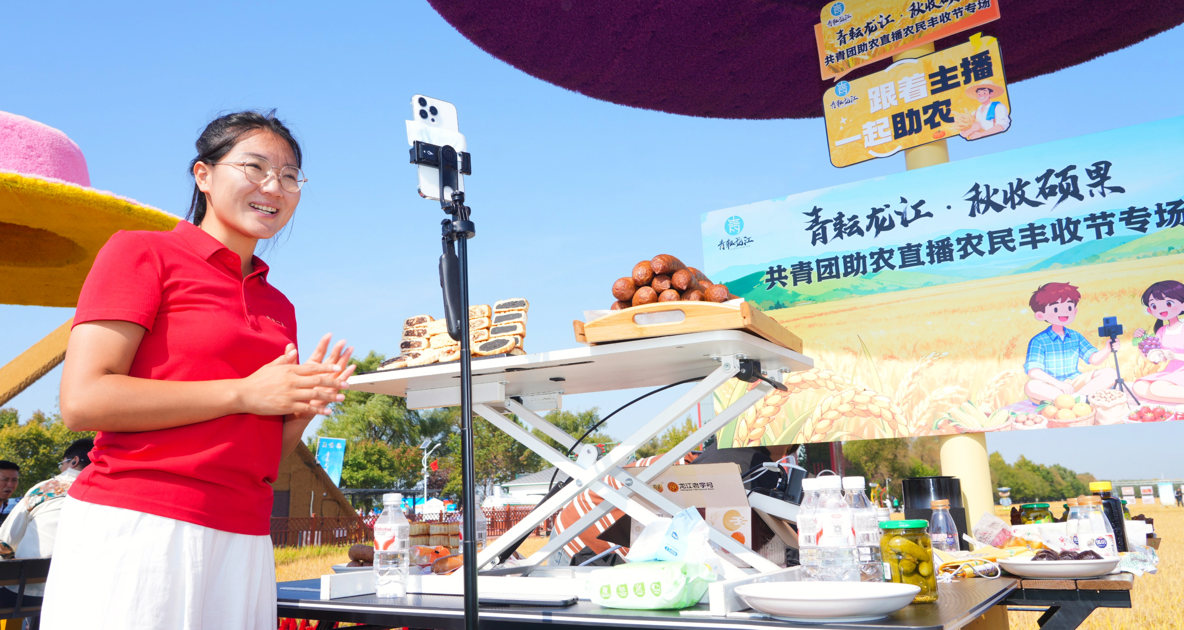 一边稻田喜开镰,一边农民喜开颜。丰收的成果,在展销与对接中转化为农民实实在在的收益。在“黑土优品”及定制农业集中展销区,来自全省65家企业的368款“黑土优品”授权产品和一些优质农产品集中亮相,优质大米、鲜食玉米、各种杂粮、特色水果等琳琅满目,吸引大家不断驻足品评。为了实现优质农产品从田间展台到线上直播间的无缝衔接,16组主播在现场掀起了“金秋消费”助农直播热潮,短短一小时,销售额就达到85万元。