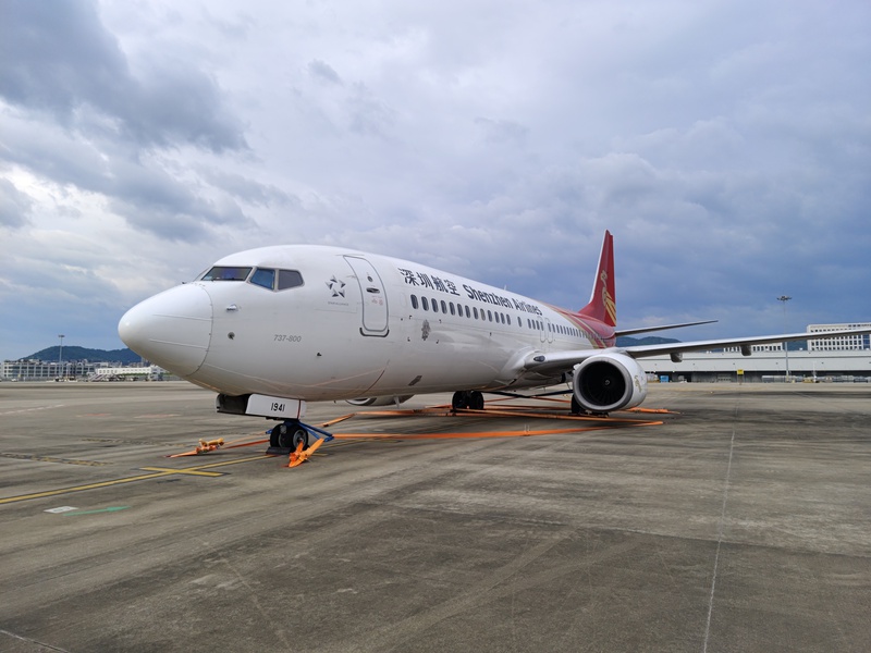 深圳航空工作人员告诉记者,为了应对台风“桦加沙”,深航不仅对进出港航班作出相应调整,还对停场飞机采取“一机一策”防风方案,通过飞机设置轮挡、加满油、增加压舱物和系留等措施,提高抗台风能力。“通过科学、严谨的系留作业,我们可以确保飞机在台风期间的安全稳定,为旅客的出行保驾护航。”