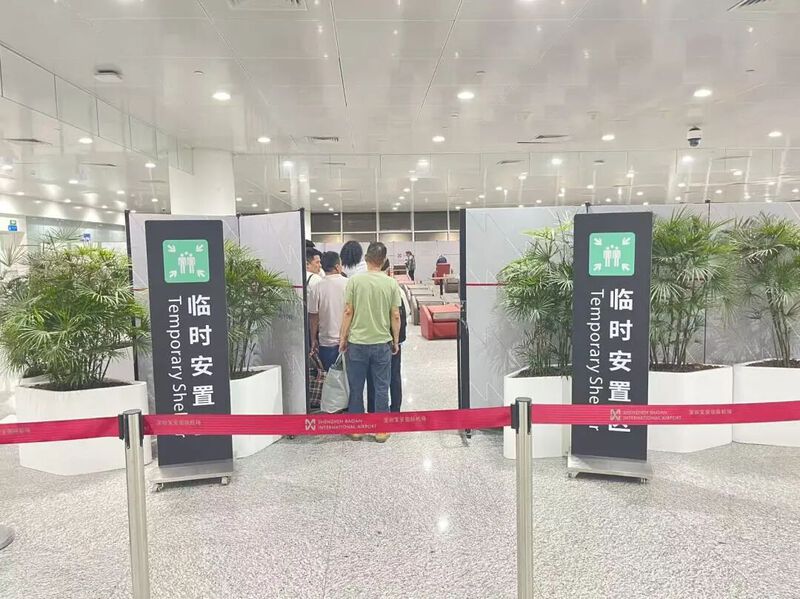 据介绍,除了保障深圳机场机坪上的飞机安全,还为了确保台风过境期间人员安全,深圳机场在航站楼地面交通中心一层设置了临时旅客安置休息区。23日航班执行完毕后,机场组织对航站楼、卫星厅等处进行了全面清场,对个别无法离开的旅客已转移至临时安置休息区休息,现场提供必要服务和帮助。