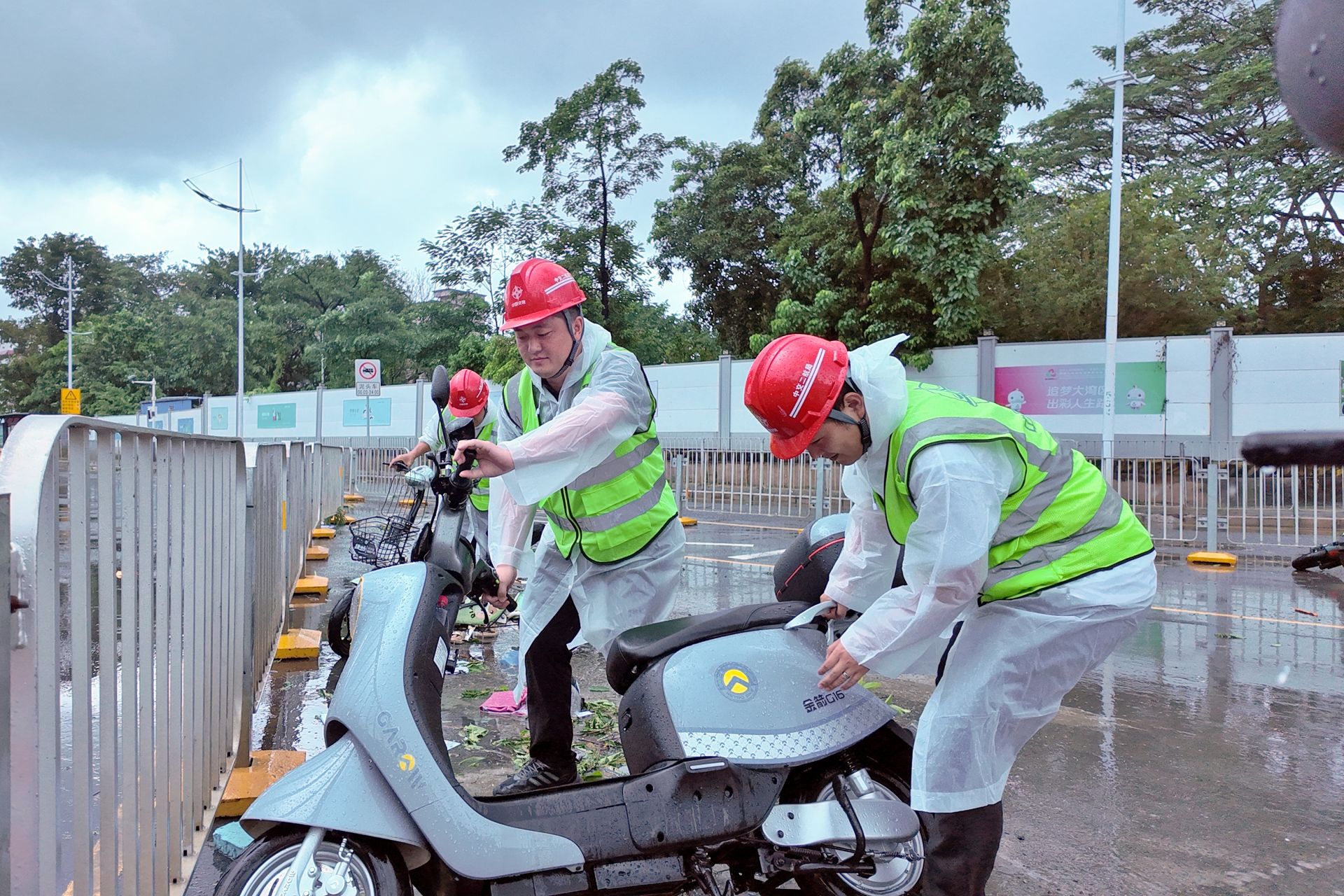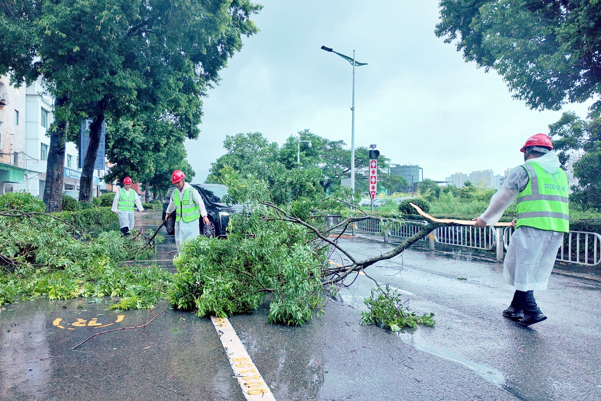 台风“桦加沙”过境后,中交二航局深惠城际大鹏支线五工区项目员工闻令而动,冒雨投身台风后恢复工作。大家分工协作,迅速扶起马路中央倾倒的隔离栏杆,将群众被吹倒的电动车逐一扶正归位;同步清理占道的断枝树干,打通交通堵点;细致清掏被落叶堵塞的雨水篦子,保障排水畅通,以实干助力城市快速恢复正常秩序。