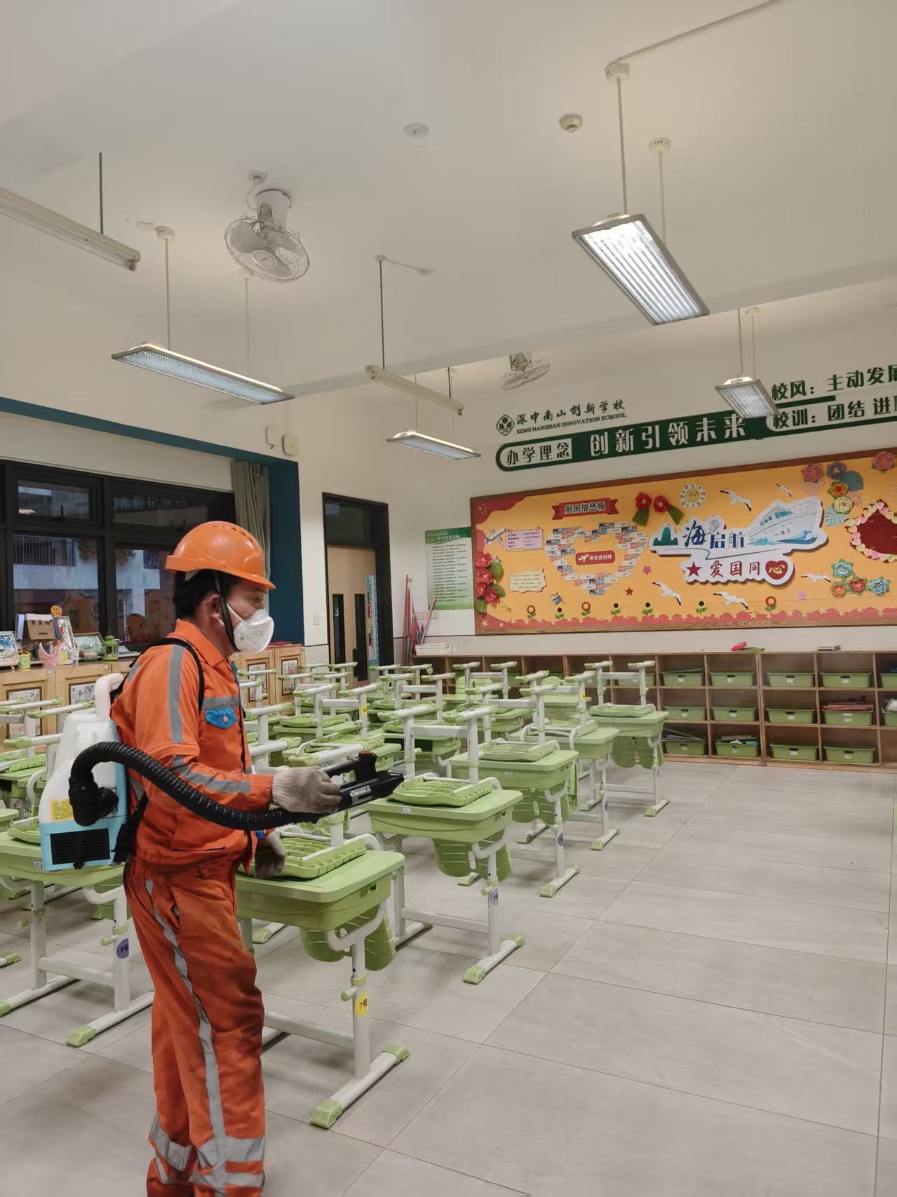 群众离场后,工作人员即刻投入校园恢复行动:先是逐区域清扫环境卫生,将散落的杂物、垃圾彻底清理;再仔细归位所有座椅,还原教室、礼堂等空间的原有布局;最后对公共区域、高频接触点位进行无死角消杀,全面消除卫生与安全隐患。