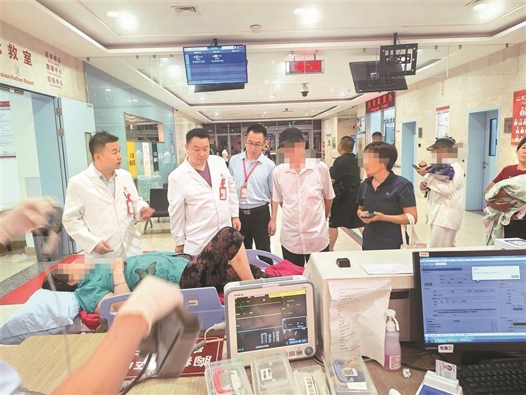一位79岁阿婆因不慎摔伤致多处骨折,被紧急送达时,急诊一二三线医师全员在岗严阵以待。风雨拍打着窗户,室内抢救紧张有序:了解病史、评估伤情、建立静脉通路、监测生命体征……所有步骤在默契协作下快速完成,为患者赢得了宝贵生机。