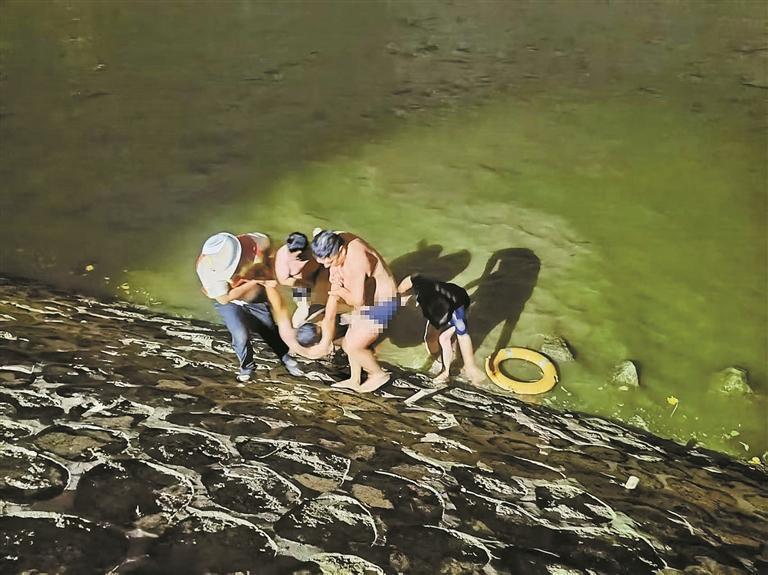 从下水到成功救援,整个过程不到两分钟!邹留定、陈建国在水中奋力托起溺水男子,在岸上队员的协助下,迅速将其救助上岸。众人齐心协力,立即协助赶到的120医护人员将男子送往附近医院救治。该男子目前已脱离生命危险。