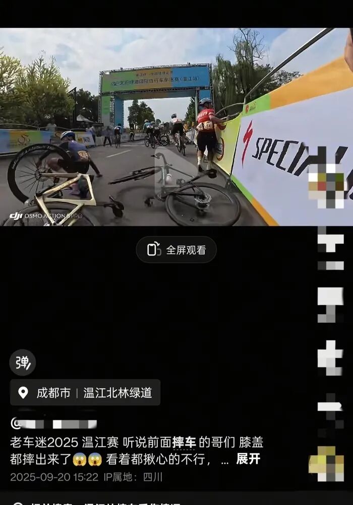 据网络视频显示,2025年成都天府绿道国际自行车车迷赛(温江站)现场,多名选手正在紧张骑行,突然发生碰撞事故,不少选手应声连车倒地,现场混乱不堪。一名年轻男选手被医护人员抬上担架,其膝盖部位疑似已露出白骨。据视频称,该男选手的“膝盖骨没了”,这一说法引发众多网友关注。