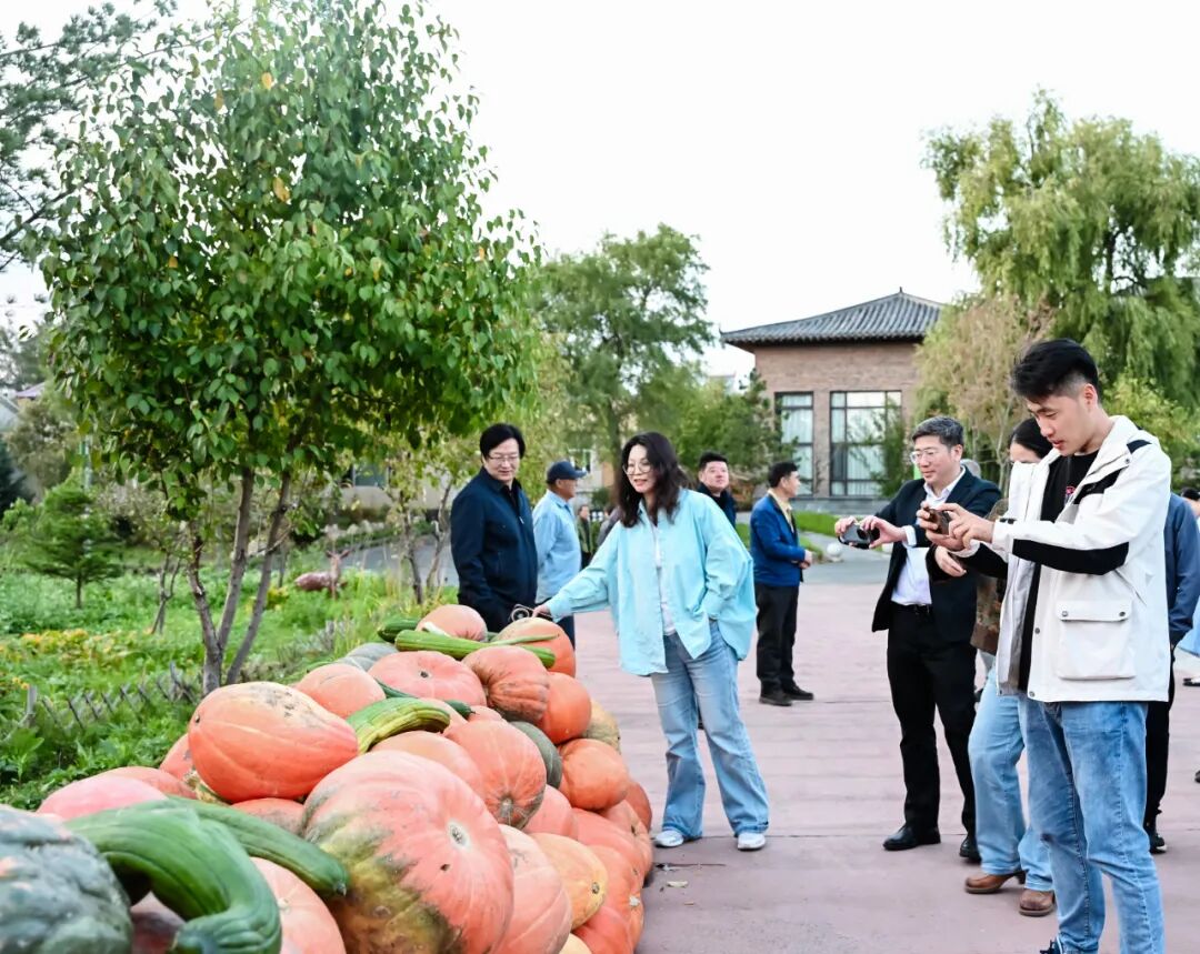不仅冬季魅力无限,秋季的天定山旅游度假小镇,同样别有韵味。走进天定山民宿,一座座极具东北民俗特色的院落错落有致,由南瓜、冬瓜等堆积起的“瓜山”充满丰收气息,院中的蔬菜采摘区更是勾起了采访团的兴趣。大家亲手采摘红彤彤的山楂,品尝新鲜酸甜的果肉。“这就是用来做糖葫芦的山楂吧?酸甜味儿真地道!”“东北的地大物博,农作物确实丰富。”……大家对这种“田园式体验”充满好奇。