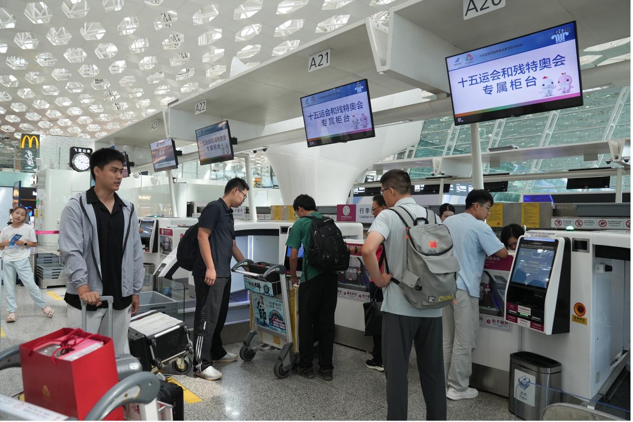 台风“桦加沙”远离,深圳重现蓝天。9月25日,因台风而滞留在宝安的第十五届全国运动会群众比赛模型(航海、车辆)项目决赛的百余名参赛人员,开始陆续踏上归途。在深圳机场办理完行李托运后,山东队教练李斌望着井然有序的出发大厅,发出了这样的感慨:“即将告别深圳返程,既开心,又不舍。参赛的5天里,保障团队与志愿团队给我们提供了充分的保障,为我们取得好成绩提供了很多优质服务,让我们全队都心存感激。”