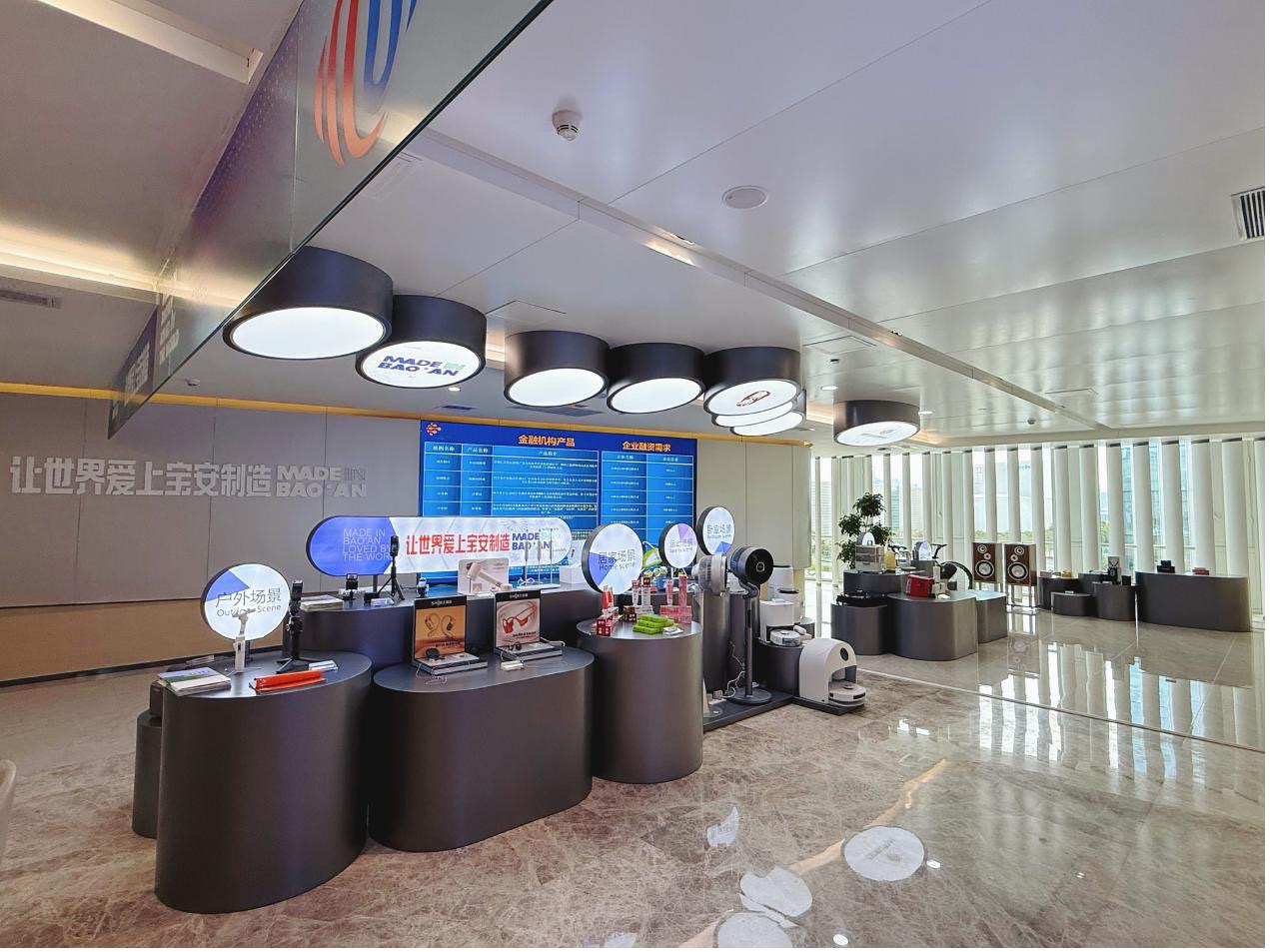宝安区金融超市是宝安区委区政府为破解企业“融资难、融资贵、融资慢”问题而打造的公益性一站式综合金融服务平台。它通过整合各类金融资源,为企业提供从初创到上市的全生命周期金融服务。2025年,宝安区金融超市开启“3.0”版本升级,在实体大厅设置“让世界爱上宝安制造”金融超市宝企优品展示展销平台,并通过巡展方式集中展示宝企优质产品。2025年宝安“两会”期间,由宝安区企业服务中心主办的“2025湾区方兴,御风而行——Ai宝安制造”主题展览在宝安区政府二楼大堂盛大开幕。本次展览以“视半工备、海陆空网”宝安产业新名片和“场景冠军”八大场景为主线,集中展示了宝安区企业在各产业领域及生活场景中的产品创新成果。全区63家企业精彩亮相,吸引了来自各行各业的两会代表驻足观展,现场氛围热烈、互动频繁,取得了显著的宣传效果。