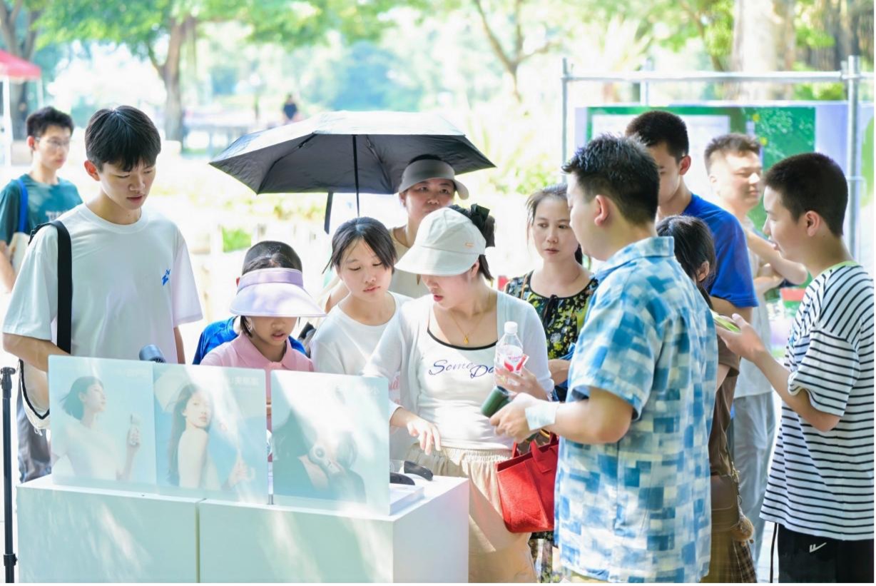 ▲在凤凰山户外主题展中众多市民听取工作人员介绍产品信息。