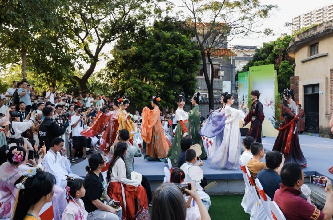 依托古墟特有的市井文化底蕴,本次活动创新打造清平墟市国潮文化市集,每天下午4点开市,多个特色摊位将汉服文化与传统非遗手艺相结合。此外,还有云想霓裳汉裳清平国风文化展,不仅可体验古法妆造、传统首饰制作,还能在古墟集市上品尝复原唐宋茶点、购买手工刺绣饰品。这种“可穿、可食、可赏、可玩”的沉浸式体验,让汉服文化真正融入生活。