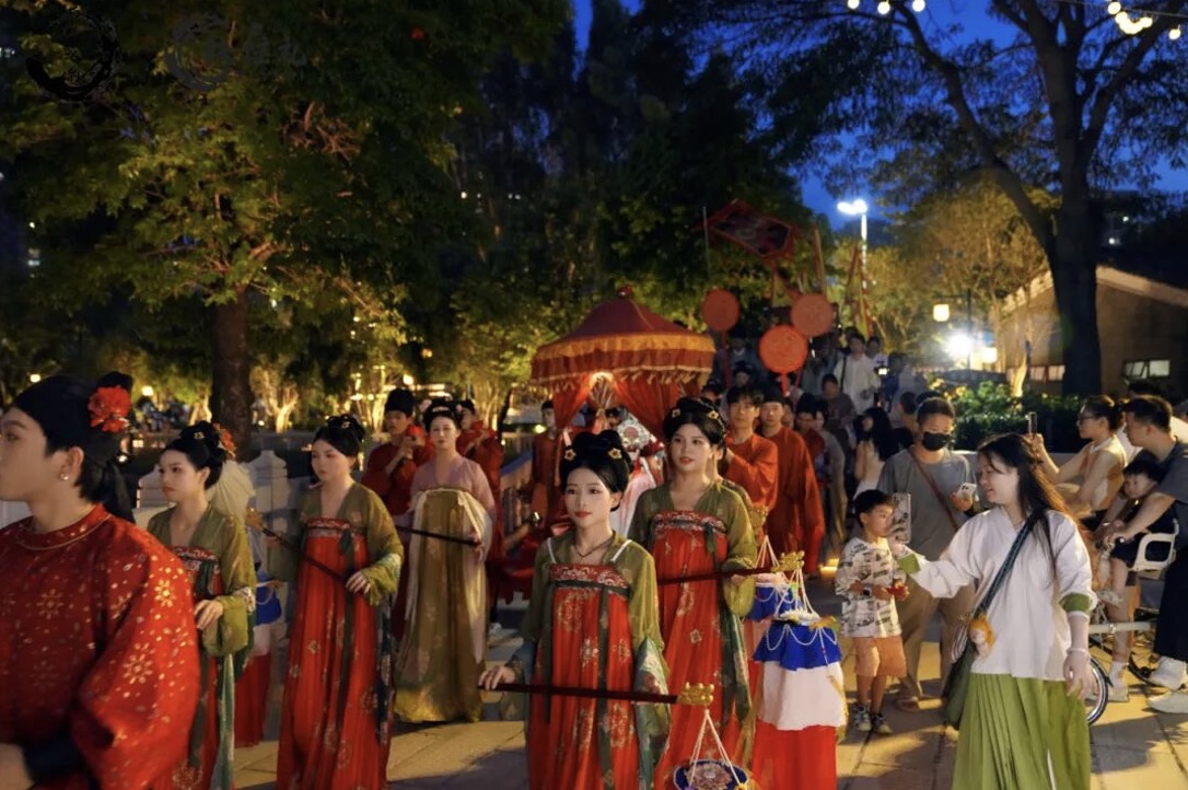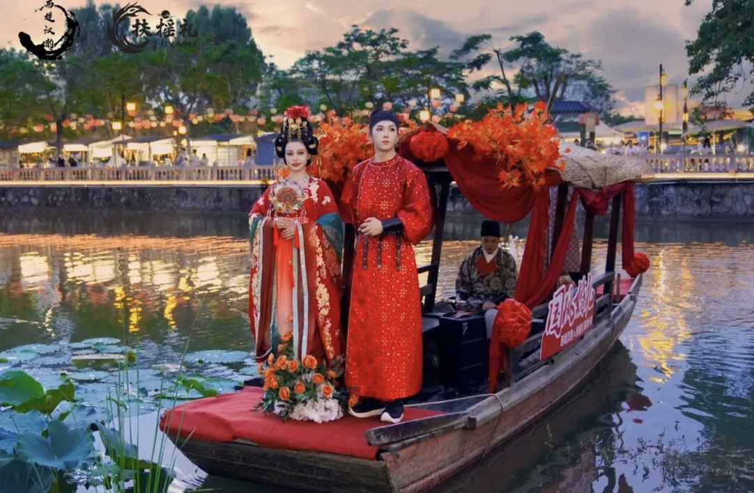 迎亲游园红妆十里映芳华,花船游湖水墨江南入画来……记者获悉,本届汉裳清平国潮文化周将延续唐、宋、明三朝古典婚礼。同时,邀请来自深圳大学、清平实验学校学子共同演绎国风舞蹈和戏剧。而走在墟市还能偶遇“四大才子”与你对诗一首。活动还融合墟市烟火气,联动古墟商家开展开展优惠活动。国庆假期期间,实现“清平十二时辰”全时段汉风体验。