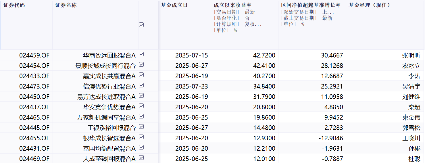 首批26只新型浮动费率基金成立日期在6月6日-7月23日之间,近期陆续启动开放申赎。总体来看,首批新型浮动费率基金收益向好,平均收益率接近13%,首尾业绩相差近45个百分点。据同花顺数据,华商致远回报混合A、景顺长城成长同行混合、嘉实成长共赢混合A成立以来的收益率分别为42.72%、42.41%与40.27%;信澳优势行业混合A与易方达成长进取混合A收益率均超过30%,分别为34.84%与31.79%。此外,工银泓裕回报混合、富国均衡配置混合A、银华成长智选混合A等6只产品成立以来的收益率超过10%。目前有3只新型浮动费率基金成立以来的收益为负,净值跌幅在0.94%-1.94%不等。