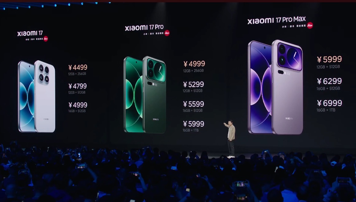 价格方面,小米17价格4499元起,17Pro起售价4999元,小米17Pro Max起售价5999元。