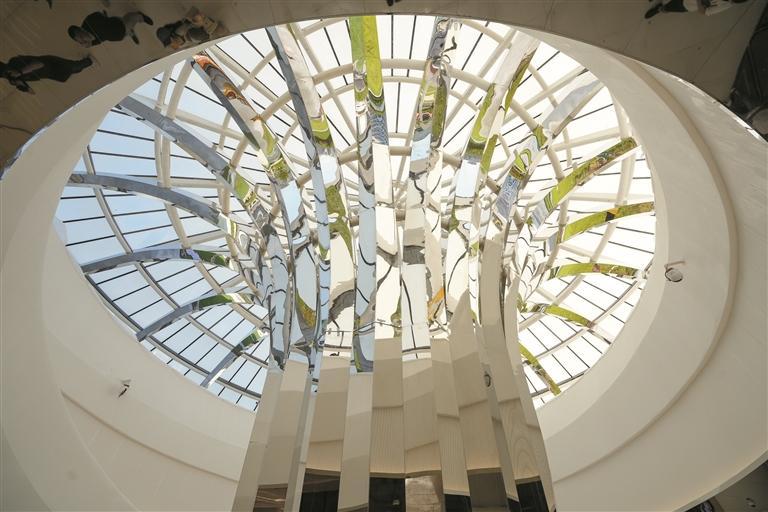 ▲透光的玻璃穹顶与金属反光板材构成科技感十足的“智慧树”。