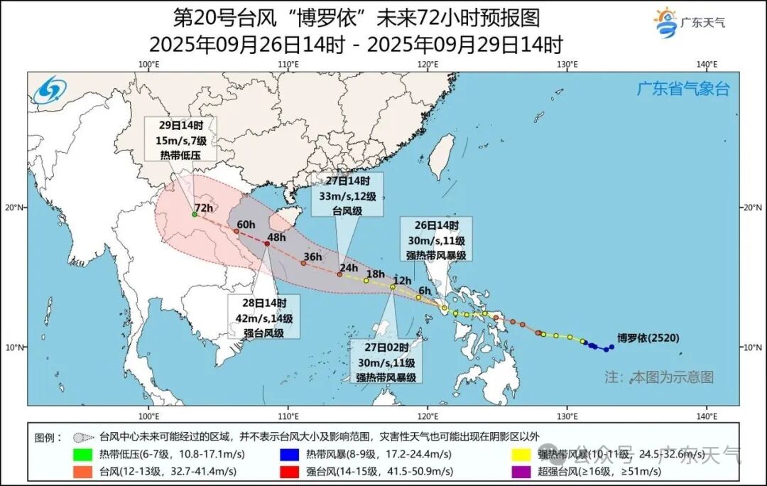 放眼全省,“博罗依”的主要目标是海南岛南部海域,但其庞大的外围环流将给广东带来显著影响。