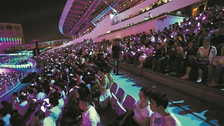 从福田专程赶来看演出的小林同学说,这是自己第一次吹着海风看偶像唱歌,感觉非常浪漫。“王晰的低音一出来,我感觉脚下的看台都在共振,音响效果非常好!”