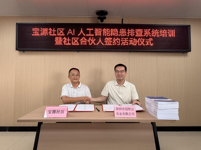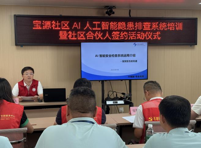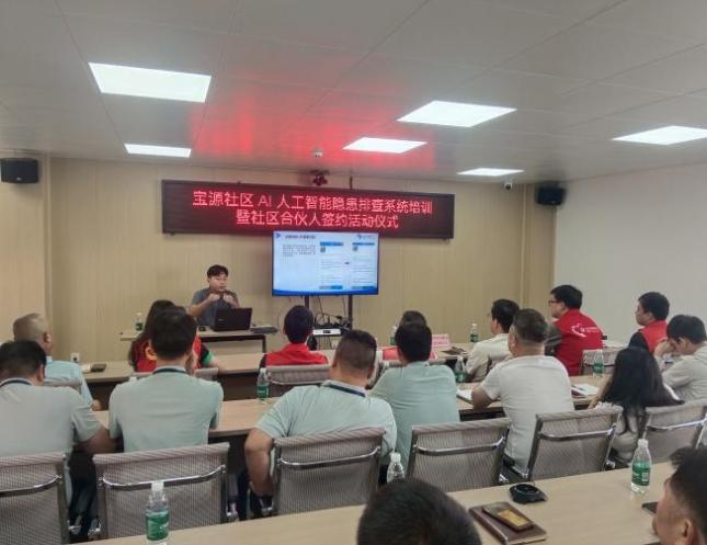 为解决基层社区治理中普遍存在的安全生产风险辨识度不高、隐患查找研判能力不足、安全生产领域专业知识薄弱、人手紧缺导致工作效率低下等痛点堵点问题,凝聚多方力量参与社区治理,运用AI技术提升管理水平,9月26日,石岩街道宝源社区党委举办AI人工智能隐患排查系统培训暨社区合伙人签约仪式,邀请合作方深圳市冠智达实业有限公司(以下简称“冠智达公司”)共同参与社区安全生产管理工作并建立长期合作机制。辖区网格、股份公司、物业小区、学校、企业等30名代表现场见证,共探基层安全治理新路径。