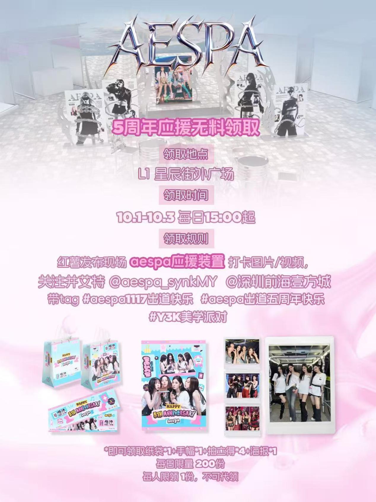 9月28日晚8点,100架无人机将在B1中心广场夜空炫酷展演,正式拉开这场“科技+节日”碰撞的小长假电子派对序幕。10月1日至10月3日,深圳独家Y3K美学派对·大湾区潮流青年生活节将在L1星辰街外广场启幕,活动内容丰富多元:策展型Y3K美学市集上,艺术打卡装置《意识涟漪》、Y3K风格饰品、机械风潮玩、小众文创齐聚摊位,逛一圈既能淘到心仪好物,随手拍都是科技感大片;10月1日16:30,POPPING街舞赛激情开赛,大湾区街舞达人轮番上阵,点燃全场氛围;10月2日18:30,新心界电音厂牌将带来音乐LIVE沉浸式蹦迪体验,让观众感受音乐的无限活力;活动还特别联动Aespa粉丝团(@aespa_synkMY)开展5周年粉丝应援活动,活动期间每日下午3点起可领取应援周边,10月3日晚更有随舞派对,跟着旋律舞动,尽享追星乐趣!