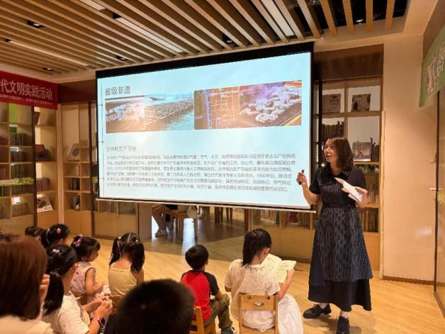 活动由沙井街道分馆与沙井街道党群服务中心联动举办,邀请本土文化工作者曾小娟主讲,曾老师结合馆藏图书《沙井非物质文化遗产图典》,系统梳理沙井现存的非遗项目,包括沙井蚝生产习俗、沙井螳螂拳(华林派)等省级非遗项目,沙井义德堂七星狮、传统植物染色技艺等区级非遗项目,勾勒出沙井文化的多元面貌。