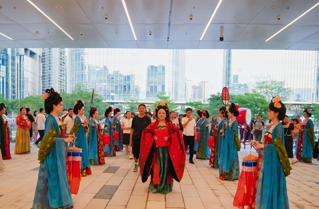 9月26日,13.1万平方米的“全球最大实体书城”深圳书城湾区城(“湾区之眼”)正式开门迎客,这座以“双玉盘”为核心设计的文化地标,成为宝安乃至粤港澳大湾区的文化新名片。开业现场,由宝安本土机构连丰文化倾力承办、湾区民俗馆策划的大唐迎宾礼惊艳亮相,不仅为“湾区之眼”注入厚重人文底蕴,更生动展现了本土文化企业践行“活化非遗、连接古今”使命的责任与担当。
