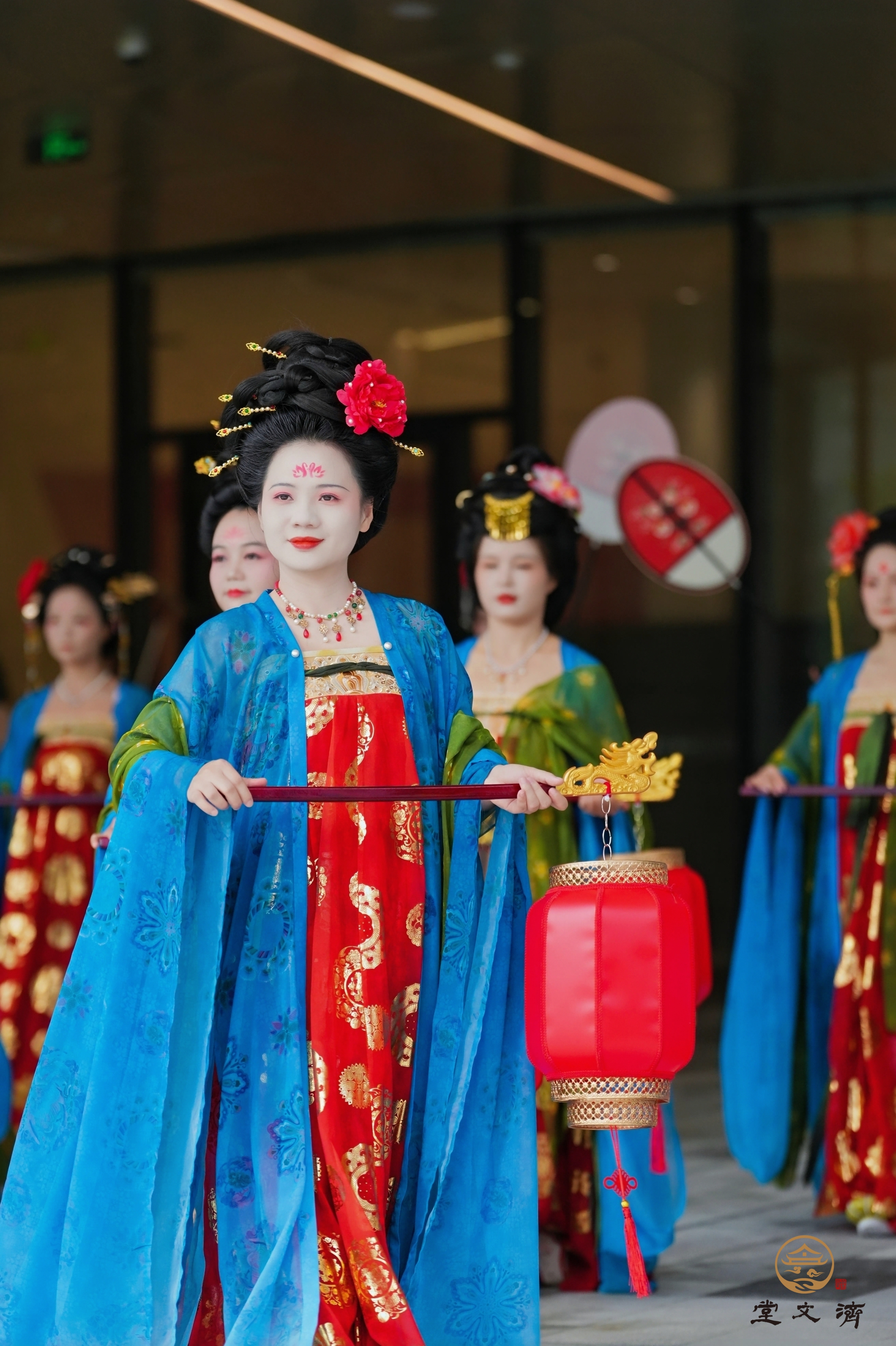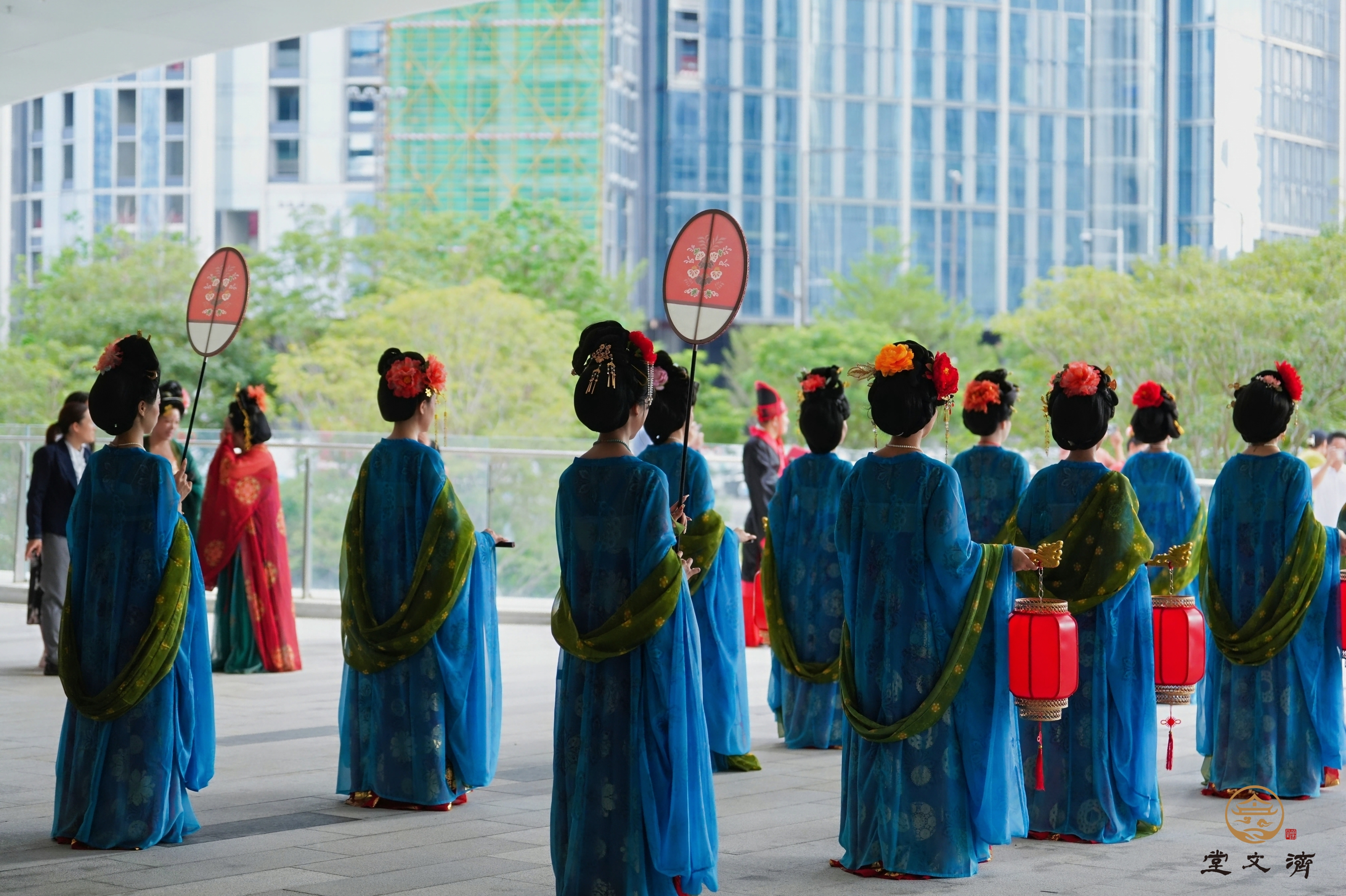 此次承接“湾区之眼”启幕礼,连丰文化将使命融入每一处细节——礼仪流程考据盛唐规制,服饰鼓乐还原古雅风貌,以匠心追溯礼乐本源,既精准呼应了书城“打破边界、连接人文”的定位,更让现场观众直观触摸到非遗文化的鲜活生命力。在这场文化盛典中,团队实力诠释初心:儒家文化研究会钟镇宇会长担任典仪官,奠定庄重基调;连丰文化创始人邵永玲以标志性的《诗经·小雅·鹿鸣》吟诵,用古朴声线构建起跨越千年的东方待客意境,这一曾亮相深圳文博会等重要场合的演绎,正是其团队传播礼仪之美的常态实践;编导青晏妃带领礼仪团队以从容仪态引导宾客,胡旋舞律动与场馆盛唐元素相映成趣,将“传统与现代交融”的追求具象化,引得观众沉浸式共鸣,掌声此起彼伏。