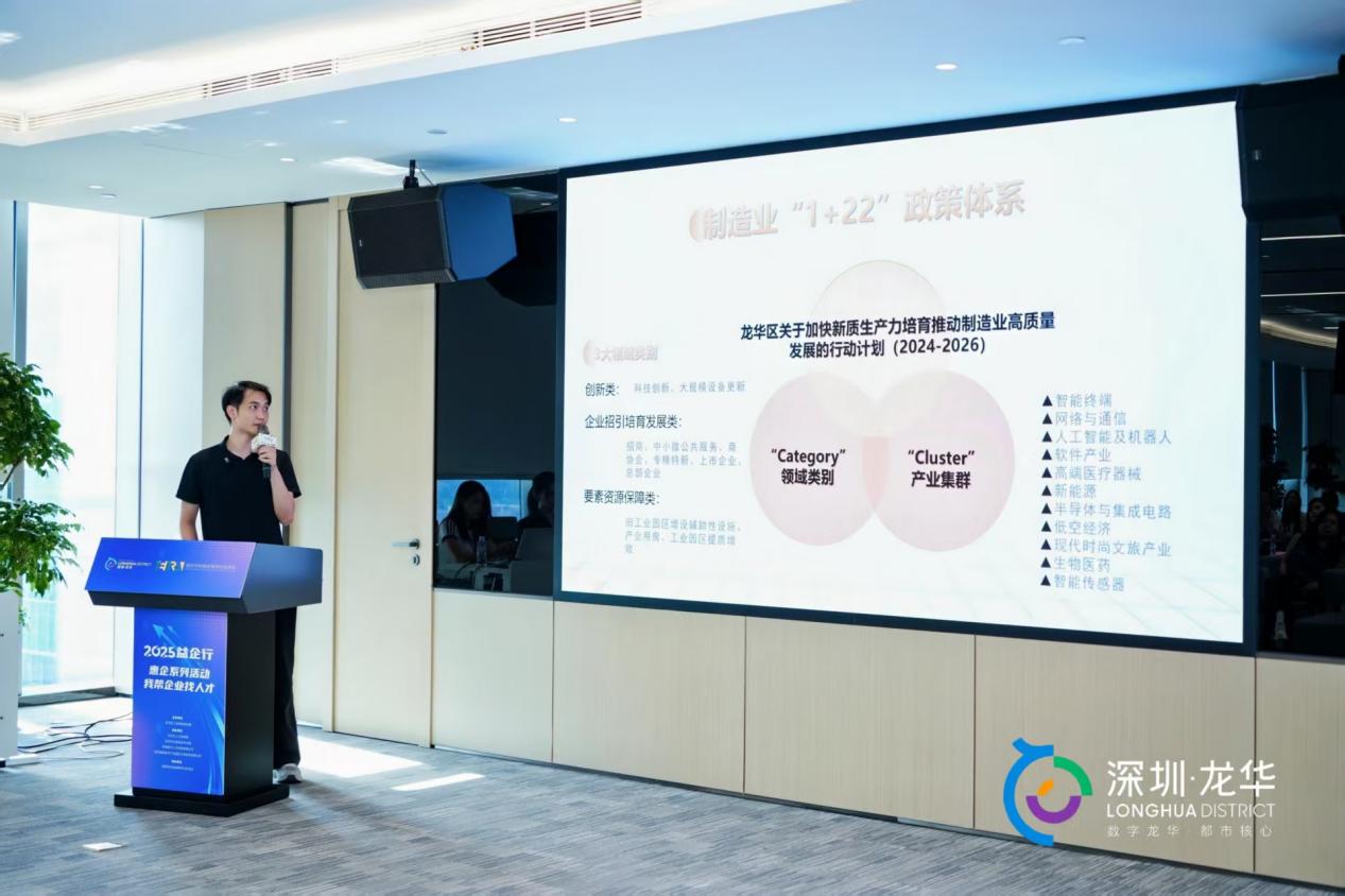 龙华区工业和信息化局首先围绕制造业“1+22”产业政策体系展开解读。该政策聚焦智能终端、机器人、低空经济等重点产业集群,通过企业梯度培育、技术改造支持、产业空间保障等举措,全面强化产业与人才的双向联动。