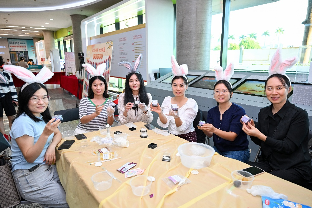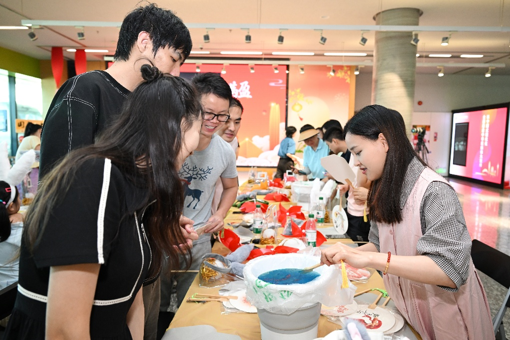 非遗漆扇体验环节中,青年们不仅学习了传统技艺,还通过创作象征双节的图案,传递对家国团圆的美好祝福;冰皮月饼制作环节则洋溢着温馨的团圆氛围,大家借助“国泰民安”“花好月圆”等吉祥纹样,在实践中体悟家国情怀。