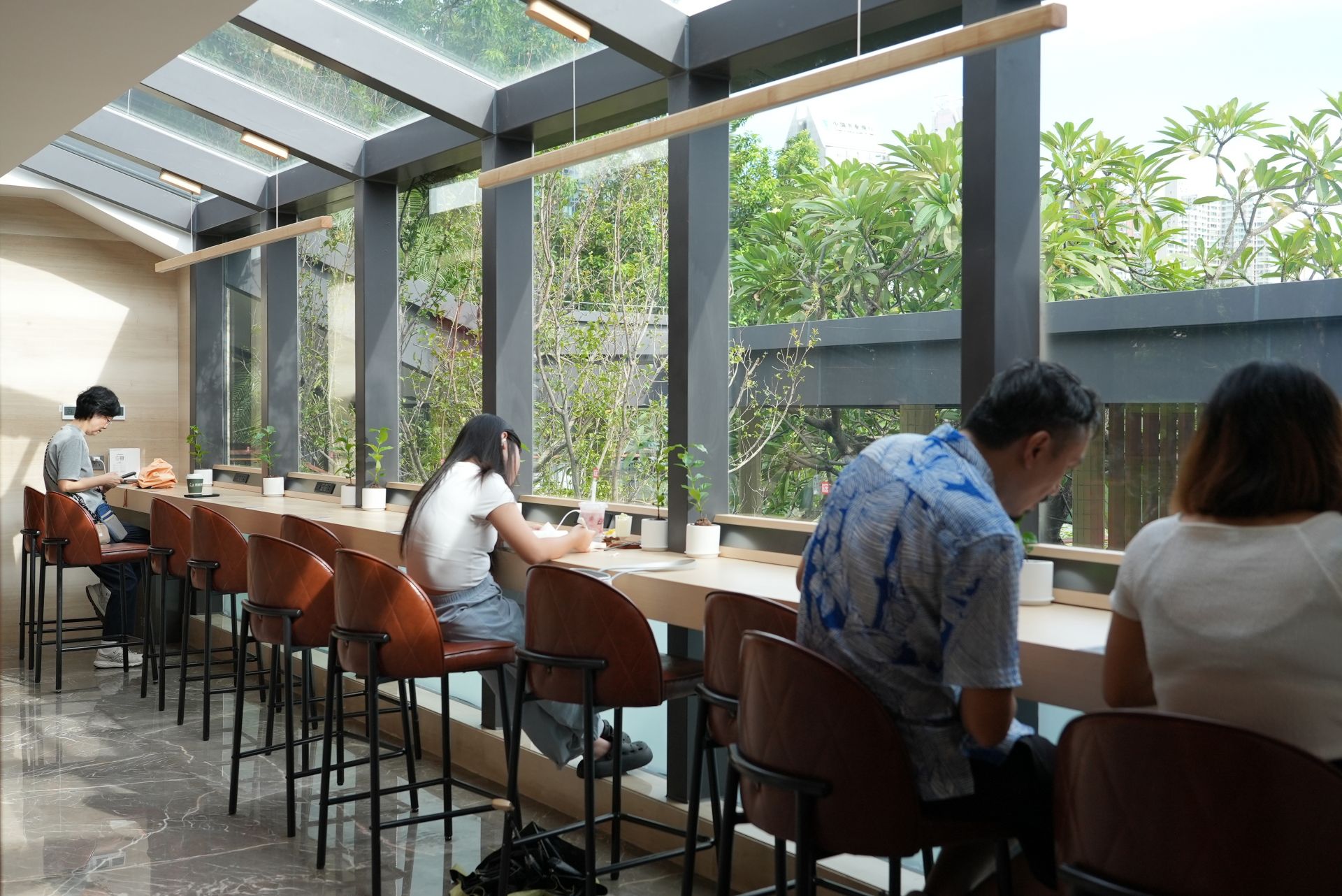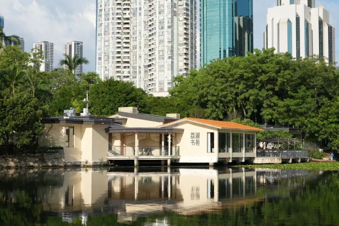 多功能室集合精致餐饮、艺文展演、商务会议属性,打造一方动静相宜的多元文化场域。在咖啡工坊(书吧阅读/售卖区),陈列出售城市、AI、地理、儿童绘本等多种类的书籍,最有特色的就是“深圳专栏”的落地书架,可以手捧一本好书、一杯茶饮,伴着窗外荔湖的波光,沉浸在知识的海洋中,享受独处的静谧时光。在下沉沙龙区——雅集,可以与志同道合的朋友齐聚在这里,沐光而坐,在交流中碰撞灵感。书苑还延伸出林间、亲水外摆平台,让书香与草木、湖光交织,营造出沉浸式氛围。