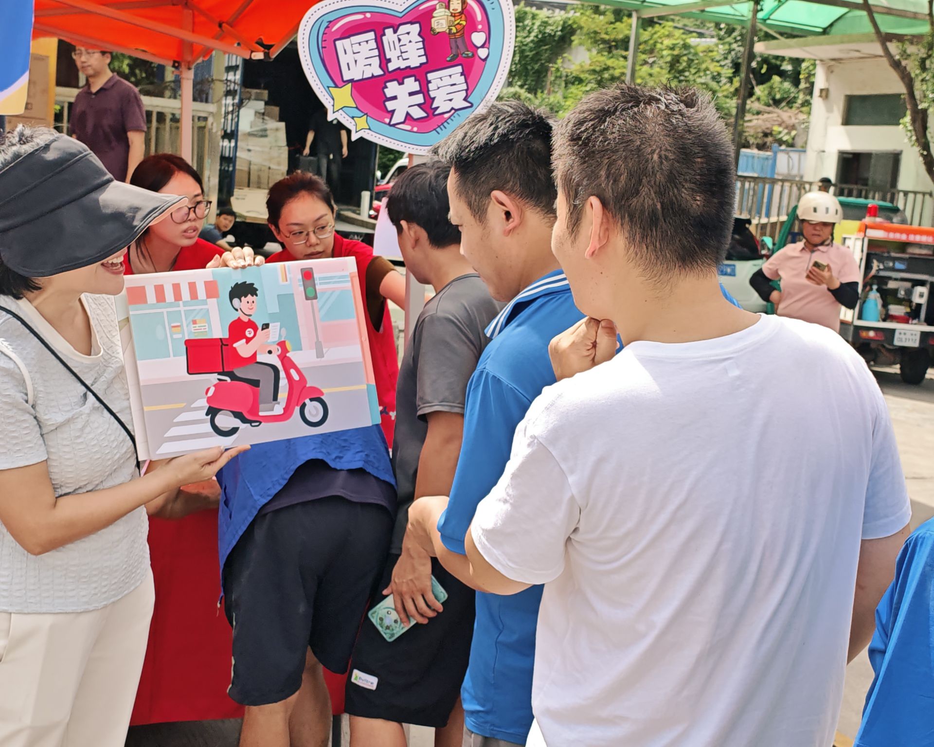 送温暖环节同样温情满满。社区设置多个互动打卡摊位,不仅向新就业群体普及安全防护、防蚊防虫等实用知识,还为每位参与者精心准备了 “暖心包”。这份承载着社区关怀的 “暖心包”,让新就业群体在双节前夕切实感受到了来自社区大家庭的温暖,也让他们的辛勤付出得到了认可与尊重。