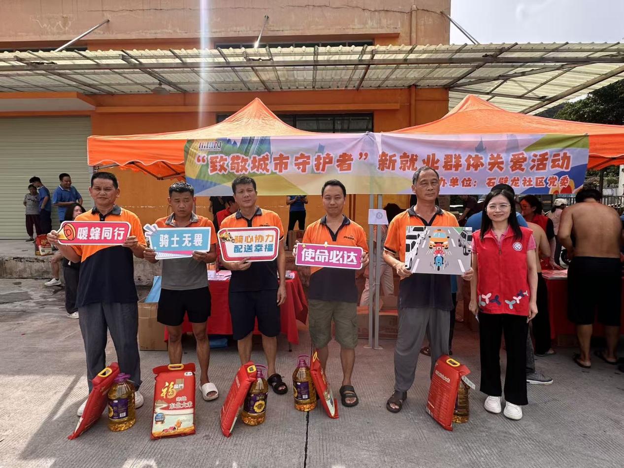 在国庆、中秋双节即将到来之际,南山区西丽街道石壁龙社区党委将关怀的目光投向辖区内200名新就业群体,为这些默默穿梭在街巷、服务于城市运转的 “守护者”开展一场关爱活动,用贴心服务与真诚问候,为他们提前送上节日的暖意。