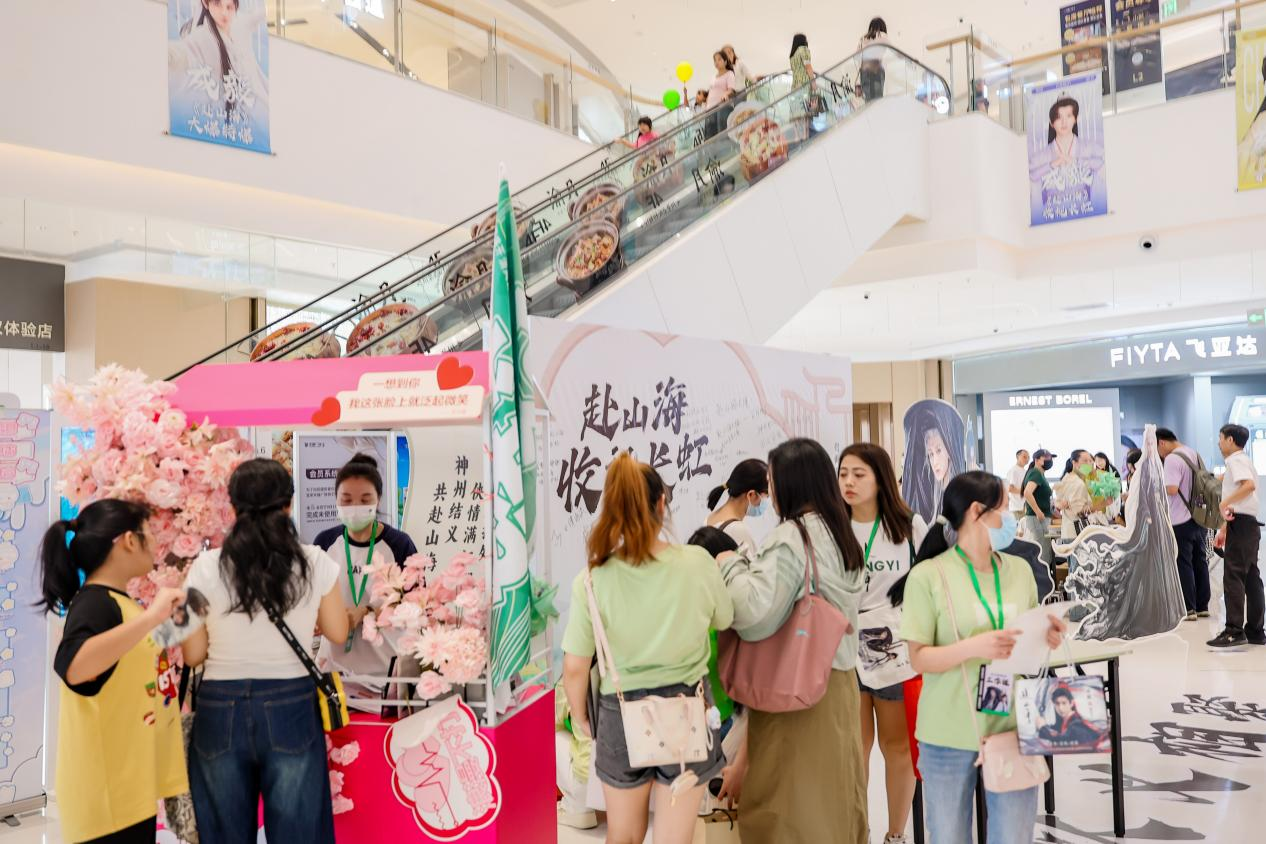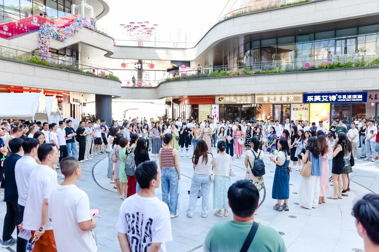 在快速迭代的流行文化中,项目展现出敏锐的“网感”:在商场大屏发起“玩梗”互动,今年520大屏营销“玩梗”拒绝恋爱脑文案系列,成功将项目打造成城市社交热点;或结合时下热门影视、综艺进行主题应援布展,例如9月27日借助成毅热播剧《赴山海》的明星效应,设置应援大屏和打卡点,瞬间吸引大量粉丝前来,实现流量爆发式增长。这种“明星应援+玩梗大屏”的营销方式,成本可控却极易在社交媒体形成裂变传播,让项目频繁“出圈”,触达更广泛年轻客群。