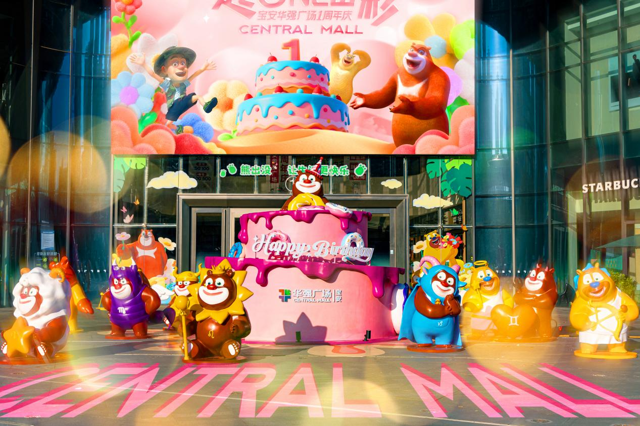 引入知名IP已成为购物中心寻求差异化的常规操作,但大多停留在短期快闪店、主题美陈层面;而在探索IP与商业体破壁融合的一年间,宝安华强广场迎来一周年庆,此次以“一起ONE出彩”为主题,携手熊出没IP推出“熊出没十二星座全国首展”,萌趣的熊大、熊二形象深度融入商业肌理。面世一周年,回顾其探索路径,不仅能看到IP如何持续为商业赋能,更可窥见“产业+商业+文化”深度融合的崭新范本。