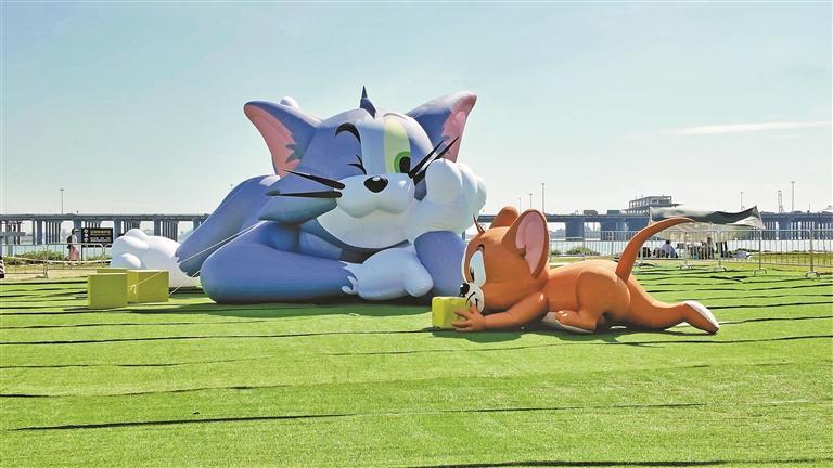 ▲前海石公园的巨型“猫和老鼠”充气玩偶。