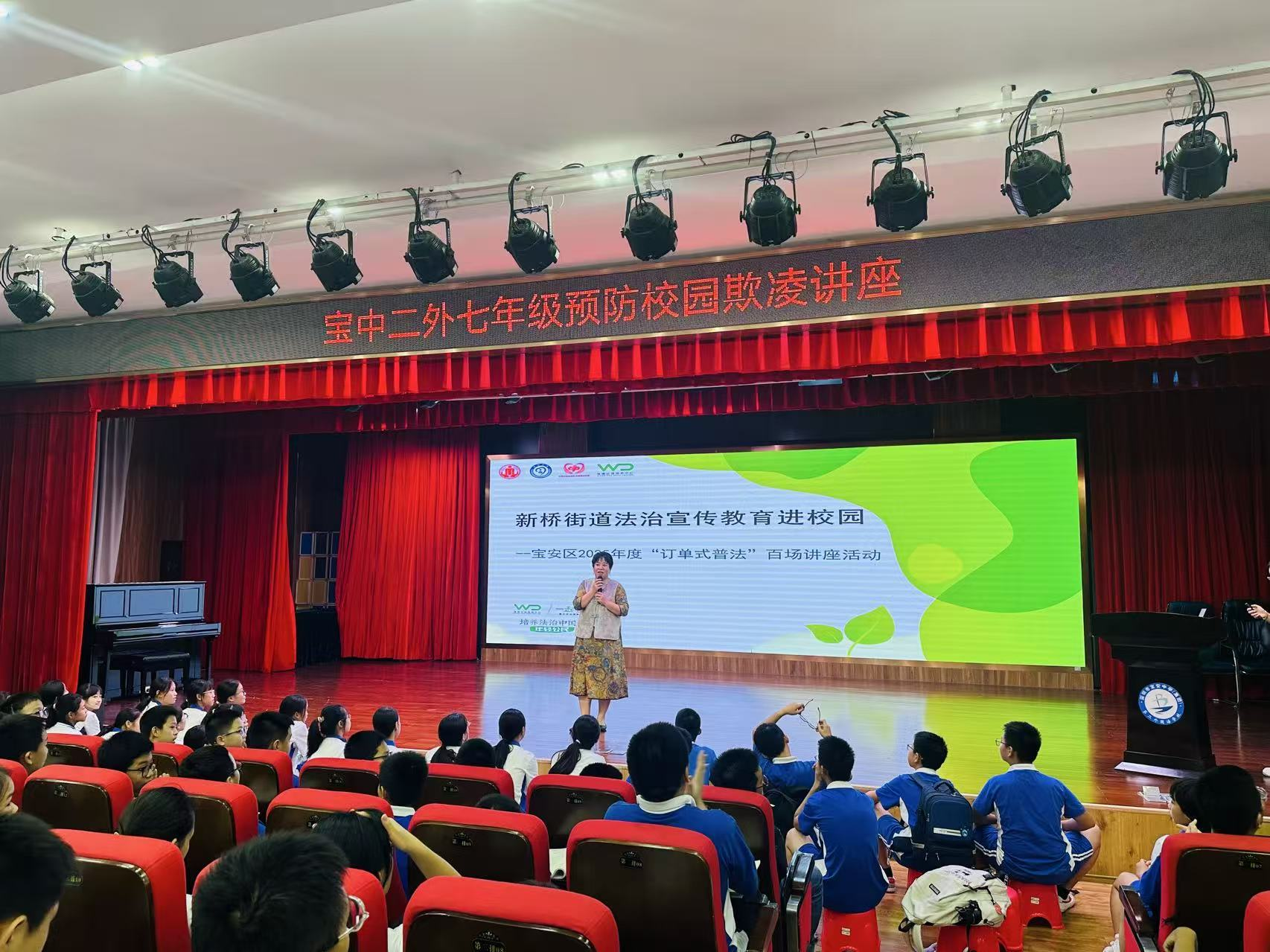 近日,新桥街道司法所邀请“八五”普法讲师上官维华律师走进宝中二外学校及上星学校,开展预防校园欺凌的主题宣传活动。