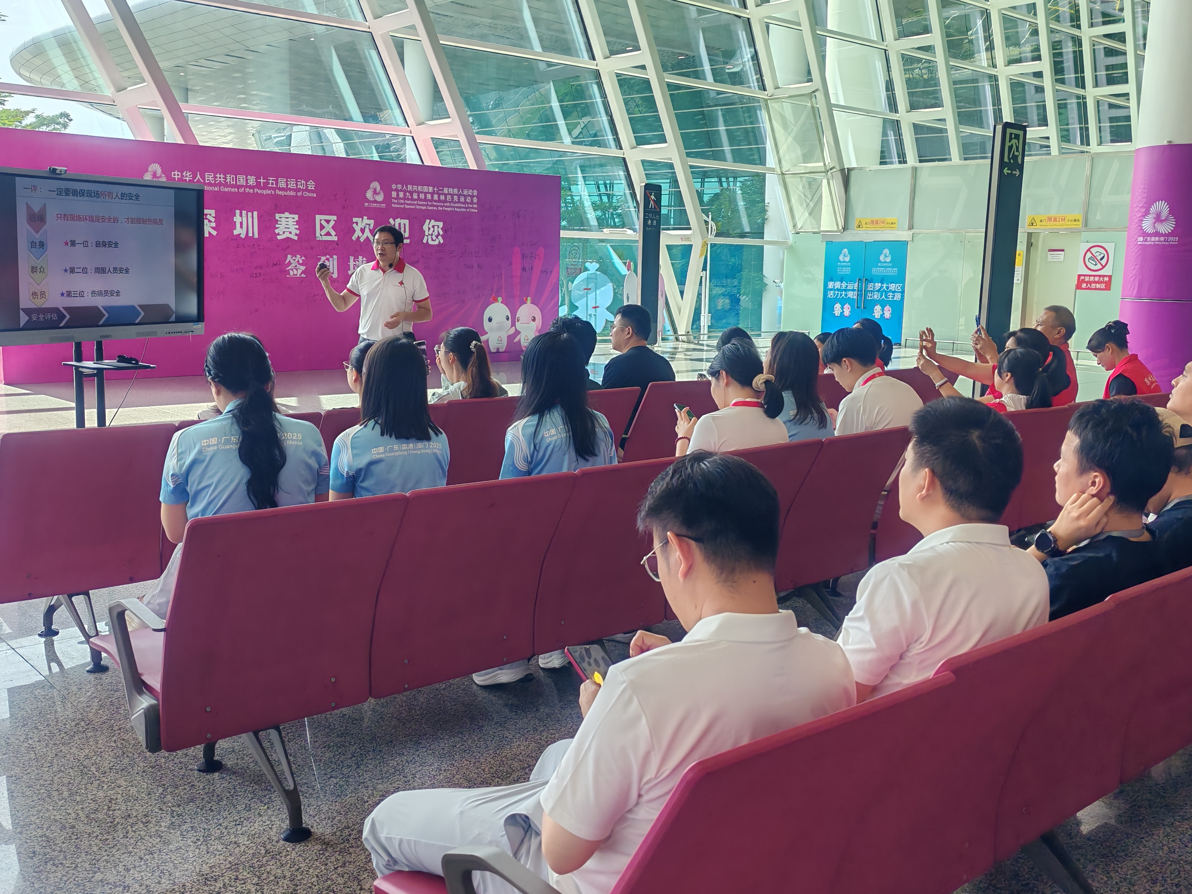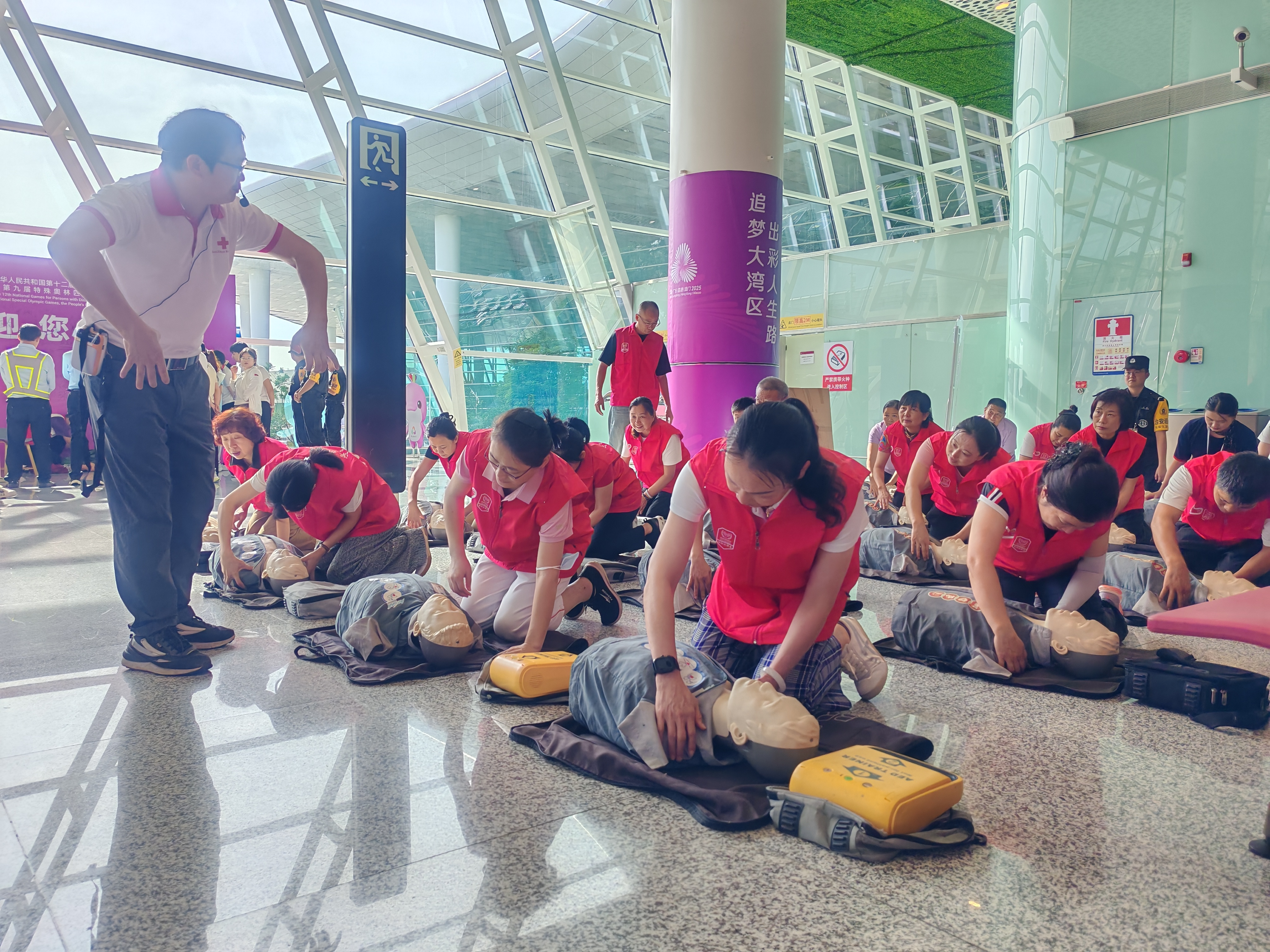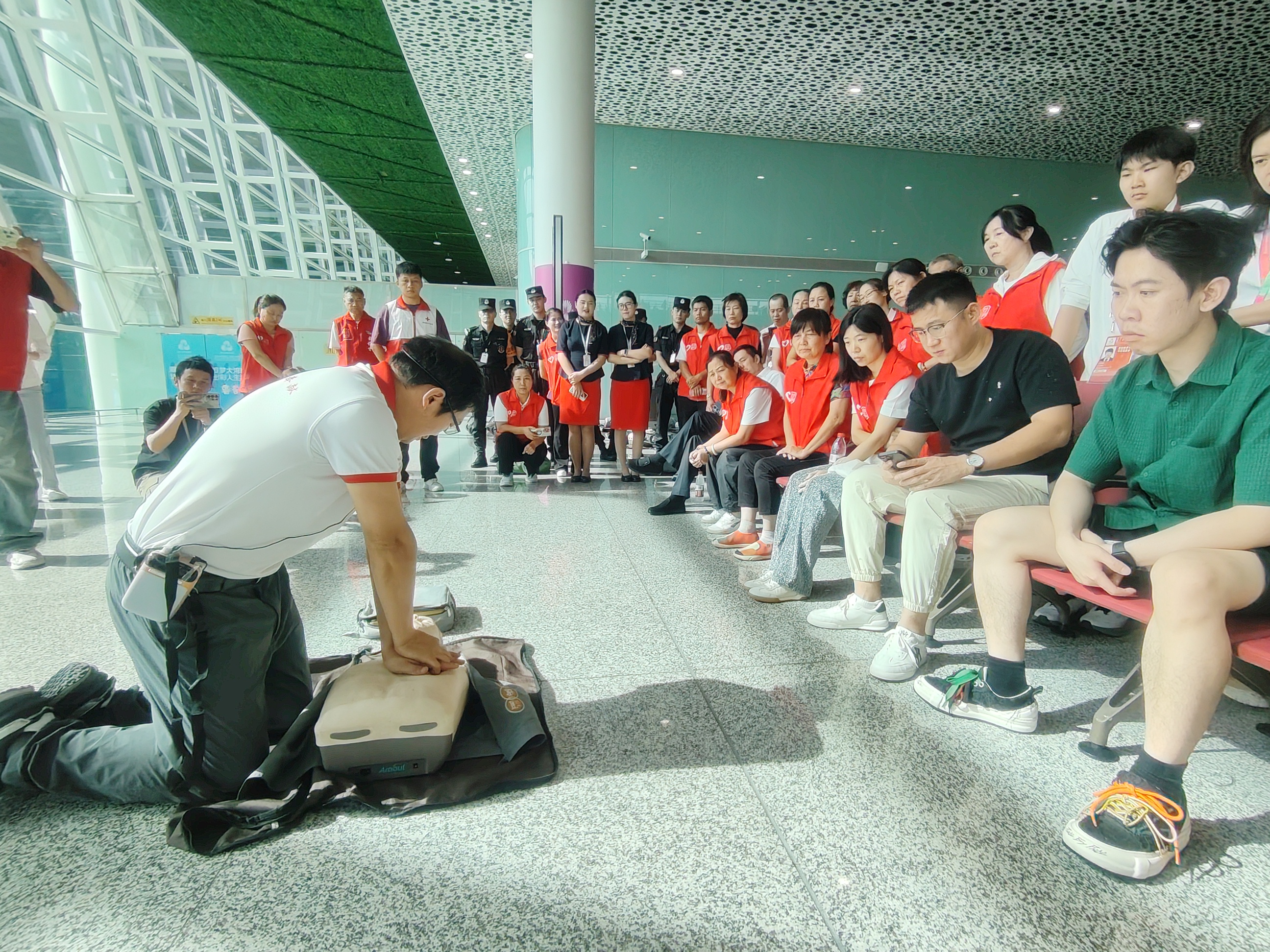 9月29日下午,十五运会和残特奥会深圳赛区机场抵离服务中心联合深圳机场集团、宝安区红十字会等多家单位,举办深圳机场赛会抵离服务中心急救与应急演练,众多赛会工作人员、志愿者现场参与急救培训及演练活动,以此全面提升赛事期间突发医疗事件的应急处置能力。