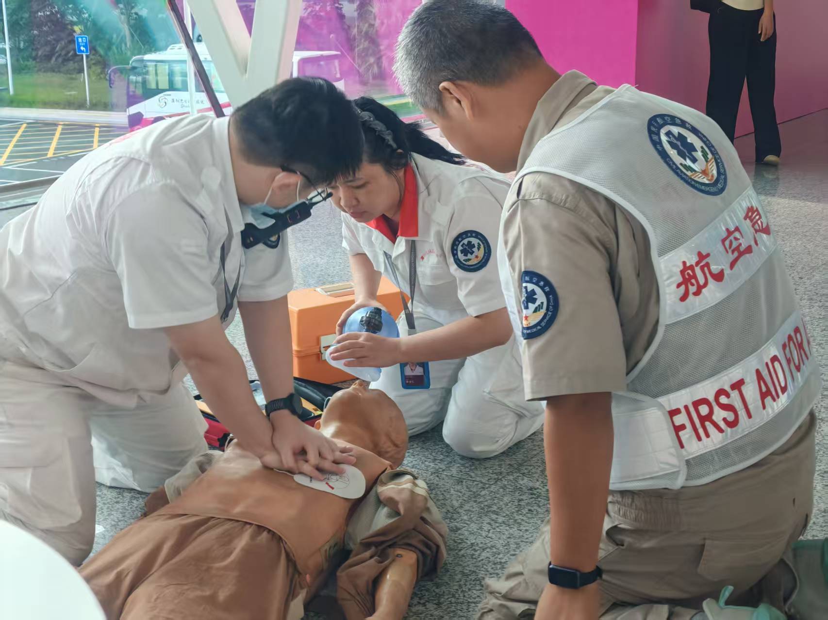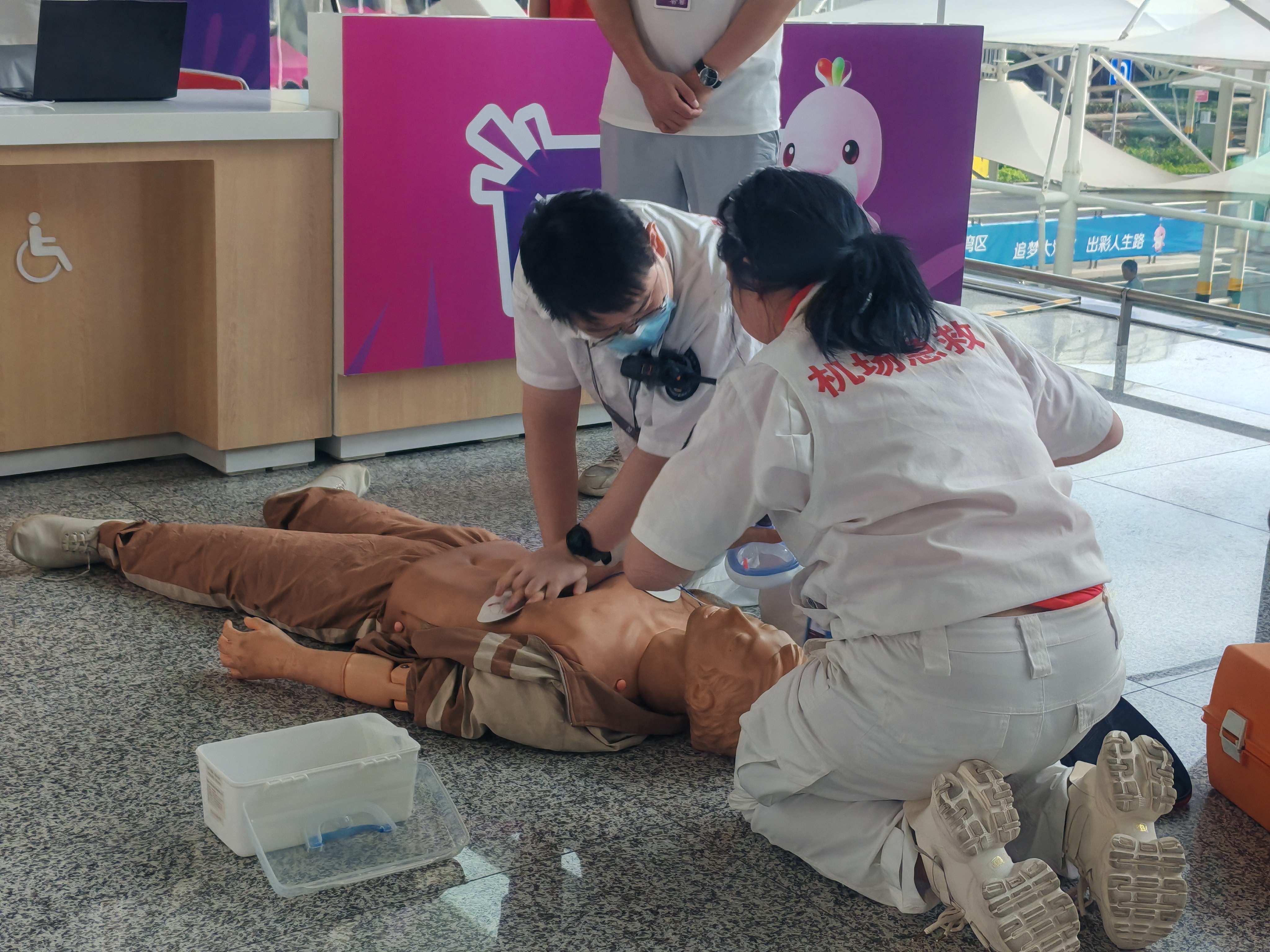为保障赛事期间抵离服务工作安全、顺畅、高效,各相关单位此次对所有参与抵离服务的工作人员进行了系统培训,确保人人掌握心肺复苏、AED使用等基本急救技能。通过“理论培训+实战演练”的模式,实现了“人人会急救,个个会应急”的目标。以此进一步完善的医疗突发事件响应机制,为即将到来的十五运会和残特奥会提供了有力的医疗保障。