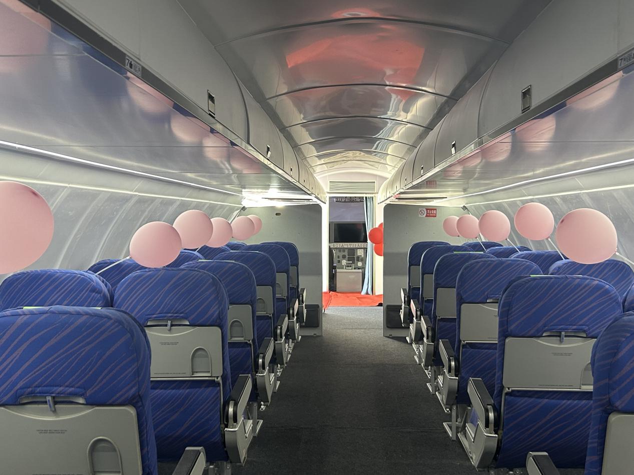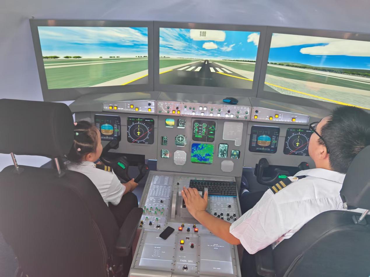 结合C919大飞机的航空科普元素,主办方精心设计了一系列丰富多彩的研学课程和体验项目。走进驾驶舱,可看到布满了按钮的操作台,学员换穿上飞行员的工作服,在教练员的指导下,模拟驾驶“飞上蓝天”;走进客舱,可看到里面有48个座位,学员可“扮演”空姐、空少,学习标准站姿、微笑及手势,在服务体验中塑造专业形象;学员还可当乘客体验氧气面具应急操作,在教员指导下完成“双手拉环 、扯开包装、 罩住口鼻 、拉紧头带”标准动作,限时完成面具佩戴与气密性检查;在应急逃生演练中,学员通过计时比拼逃生效率……在此过程中,学员可以通过教员讲解,了解客机结构 、飞行原理、发动机知识等。